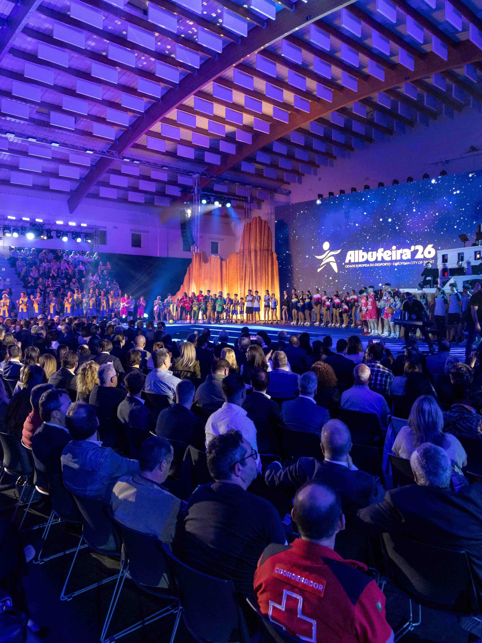 A cerimónia, apresentada por João Manzarra e Maria João Costa, incluiu intervenções institucionais. O presidente do ACES Europe, Gian Lupattelli, manifestou confiança na capacidade de Albufeira para honrar o título. Já o secretário de Estado do Desporto, Pedro Dias, sublinhou a importância de “alargar o Desporto a toda a comunidade”.