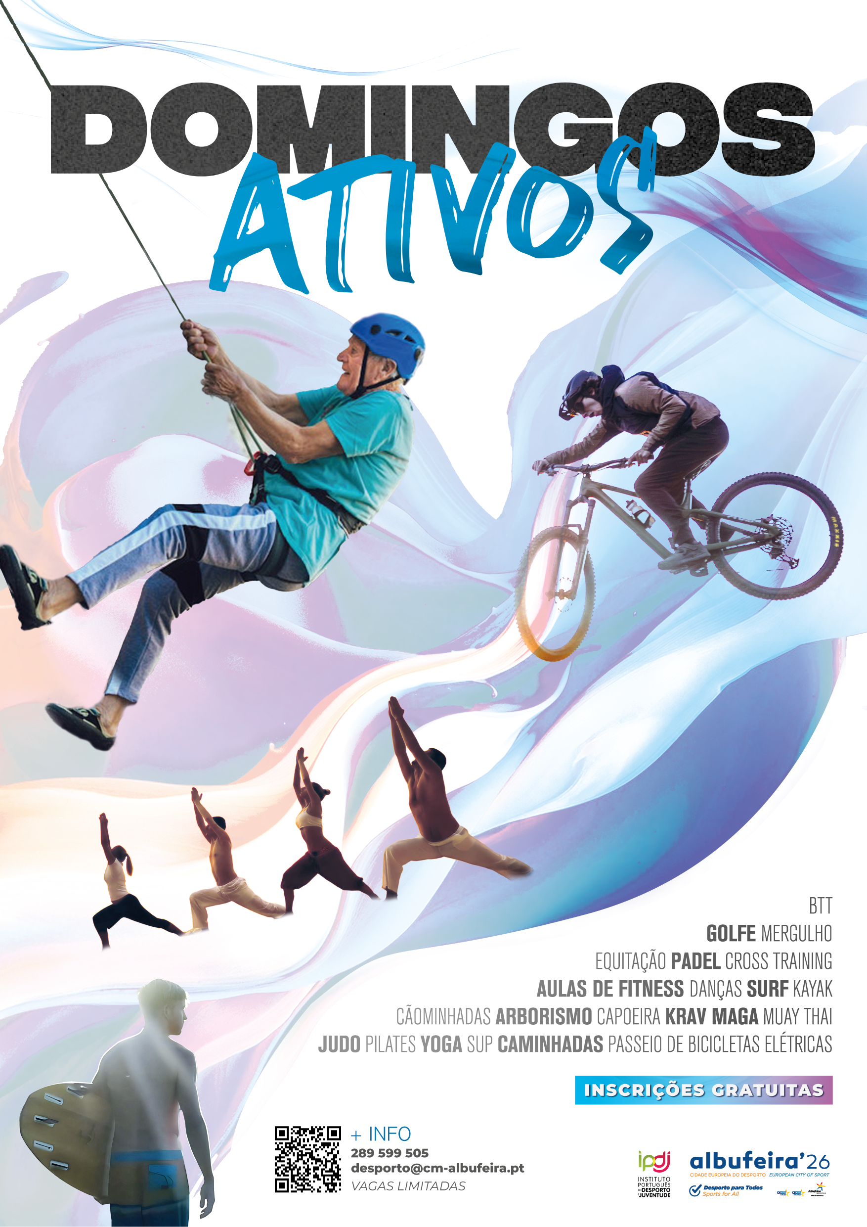 Segundo a autarquia, “o projeto ‘Domingos Ativos’ é direcionado à população em geral, e vai contar com ações distribuídas ao longo de todo o ano”, estando previstas atividades em modalidades como golfe, equitação, mergulho, entre outras. O Município sublinha ainda que “a participação é totalmente gratuita”.