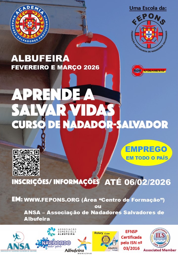 A Associação de Nadadores Salvadores de Albufeira (ANSA), através da Escola de Formação de Nadador-Salvador Profissional FEPONS, vai realizar mais um Curso de Nadador Salvador Profissional, certificado pelo Instituto de Socorros a Náufragos (ISN), entre 12 de fevereiro e 31 de março de 2026.