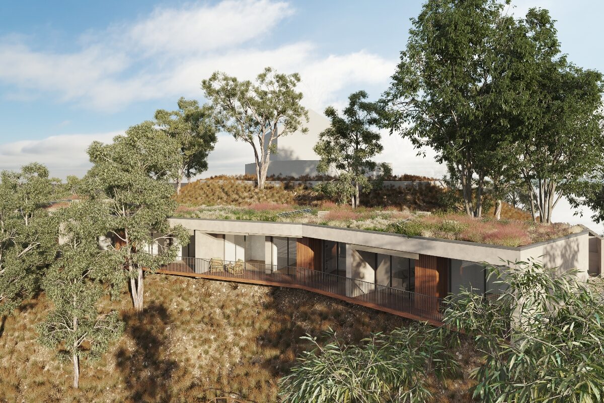 A cobertura será ajardinada, de forma a minimizar o impacto visual e preservar a vista para a Ermida da Nossa Senhora da Conceição. Além disso, o acabamento exterior será em tons semelhantes aos do terreno, permitindo uma fusão harmoniosa entre a construção e a paisagem envolvente.