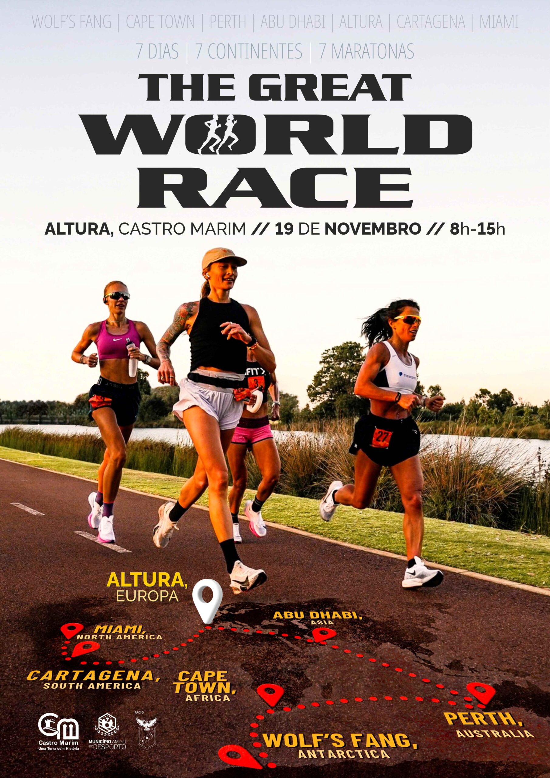 A maior e mais exigente maratona do mundo, composta por sete provas em sete dias e disputada nos sete continentes, já arrancou no passado fim de semana e chega esta quarta-feira, 19 de novembro, à Avenida 24 de Junho, em Altura, a partir das 08:00.