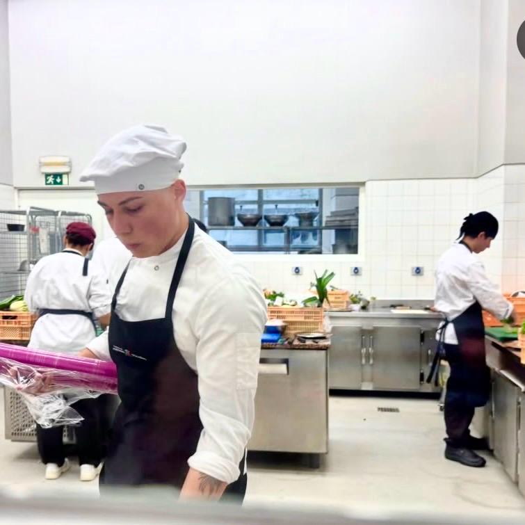 Entre os desafios propostos estiveram exercícios de carving, cortes técnicos, preparação de molho base, filetagem de peixe e frango, bem como a confeção de um prato frio, demonstrando domínio de técnicas essenciais da cozinha profissional.