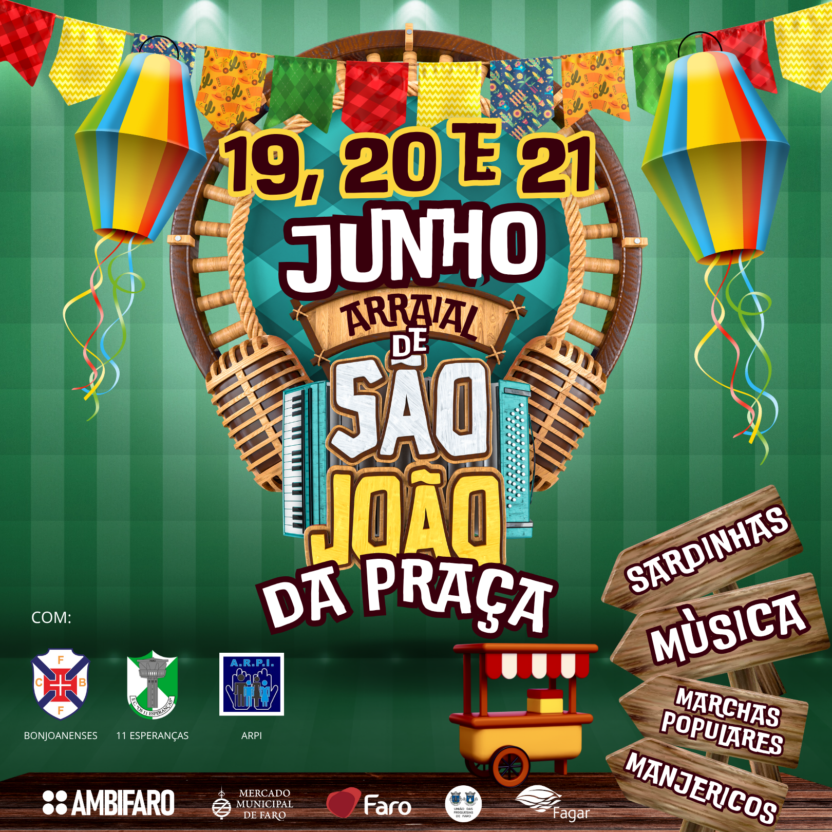 A cidade de Faro volta a viver o espírito dos Santos Populares com mais uma edição do “Arraial de São João da Praça”, que decorre entre os dias 19 e 21 de junho, no Largo D. Francisco Sá Carneiro (junto ao Mercado Municipal). Organizado pela Ambifaro, o evento promete muita animação, música ao vivo, tasquinhas, marchas populares e convívio entre gerações, com entrada livre.