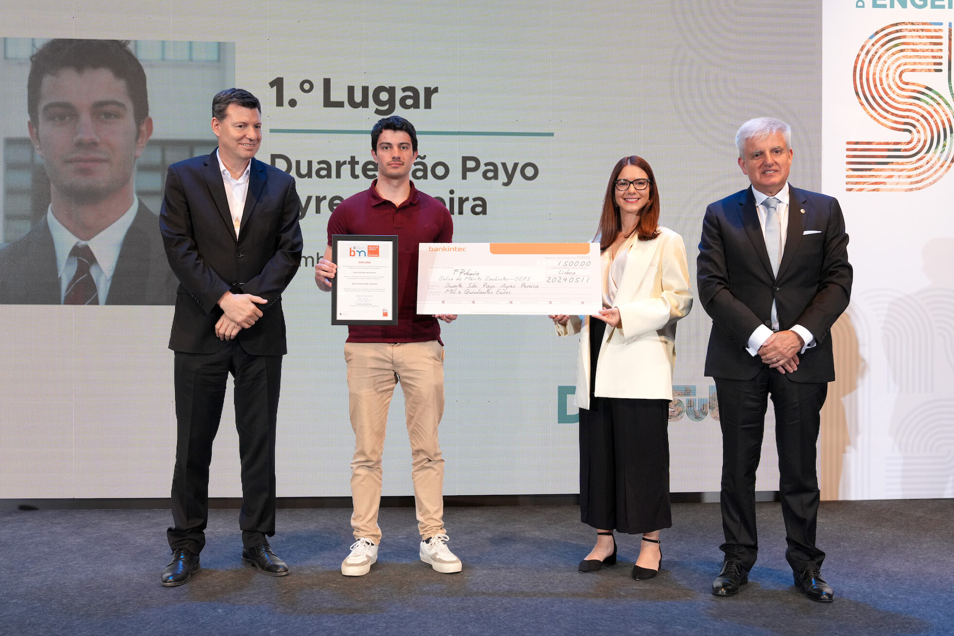 O Bankinter Portugal e a Ordem dos Engenheiros – Região Sul (OERS) premiaram este mês, em Lagos, três estudantes de Engenharia do Instituto Superior Técnico e da Universidade Atlântica, pelo seu desempenho académico, com bolsas de mérito no valor de 1.500 euros para o primeiro classificado, de 1.250 euros para o segundo e de 1.000 euros para o terceiro.