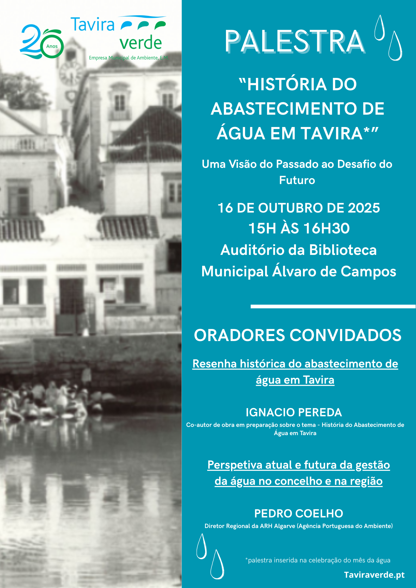 A iniciativa contará com dois oradores convidados: o escritor Ignácio Pereda, contratado pela Taviraverde para a elaboração de um livro dedicado ao tema, e Pedro Coelho, Diretor Regional da ARH Algarve.