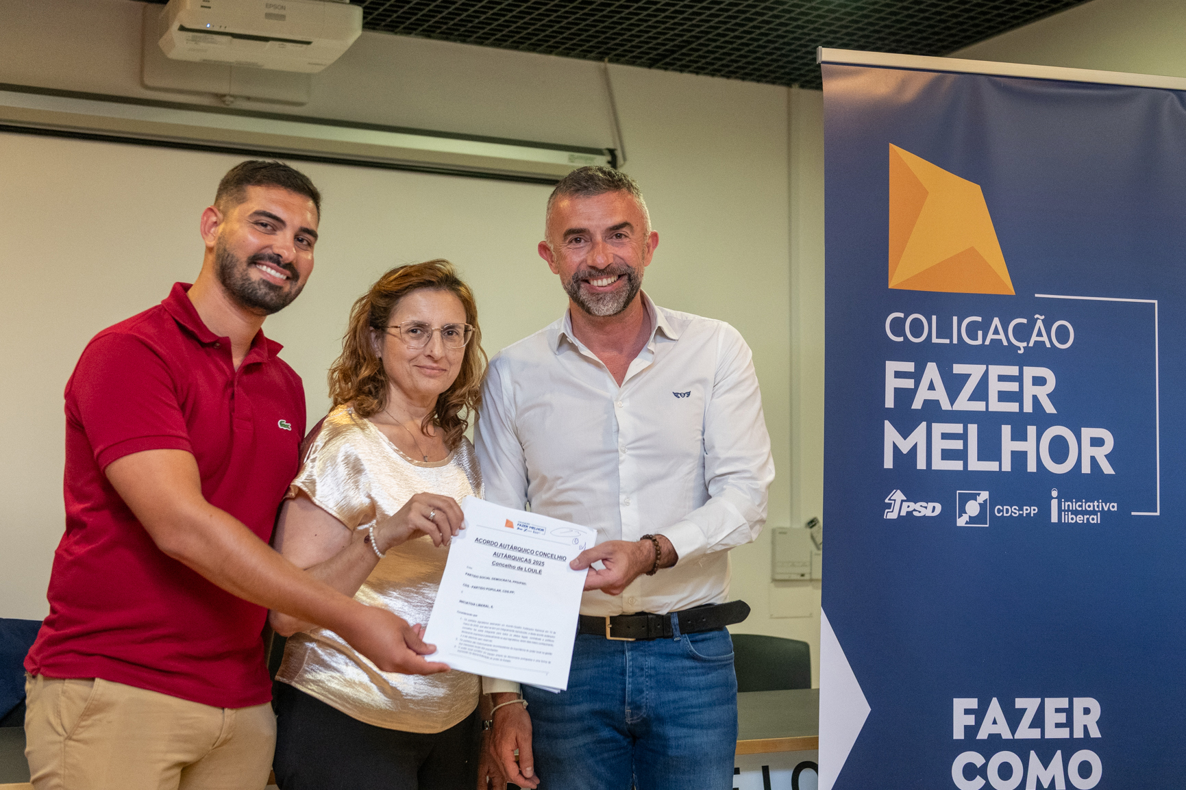 O PSD, o CDS-PP e a Iniciativa Liberal (IL) formalizaram esta quarta-feira a coligação “Fazer Melhor”, cujo candidato é Hélder Martins para as eleições autárquicas de 2025 no concelho de Loulé. O acordo, assinado na Biblioteca Municipal, reuniu uma plateia numerosa, que superou as expectativas e encheu por completo o espaço disponível.