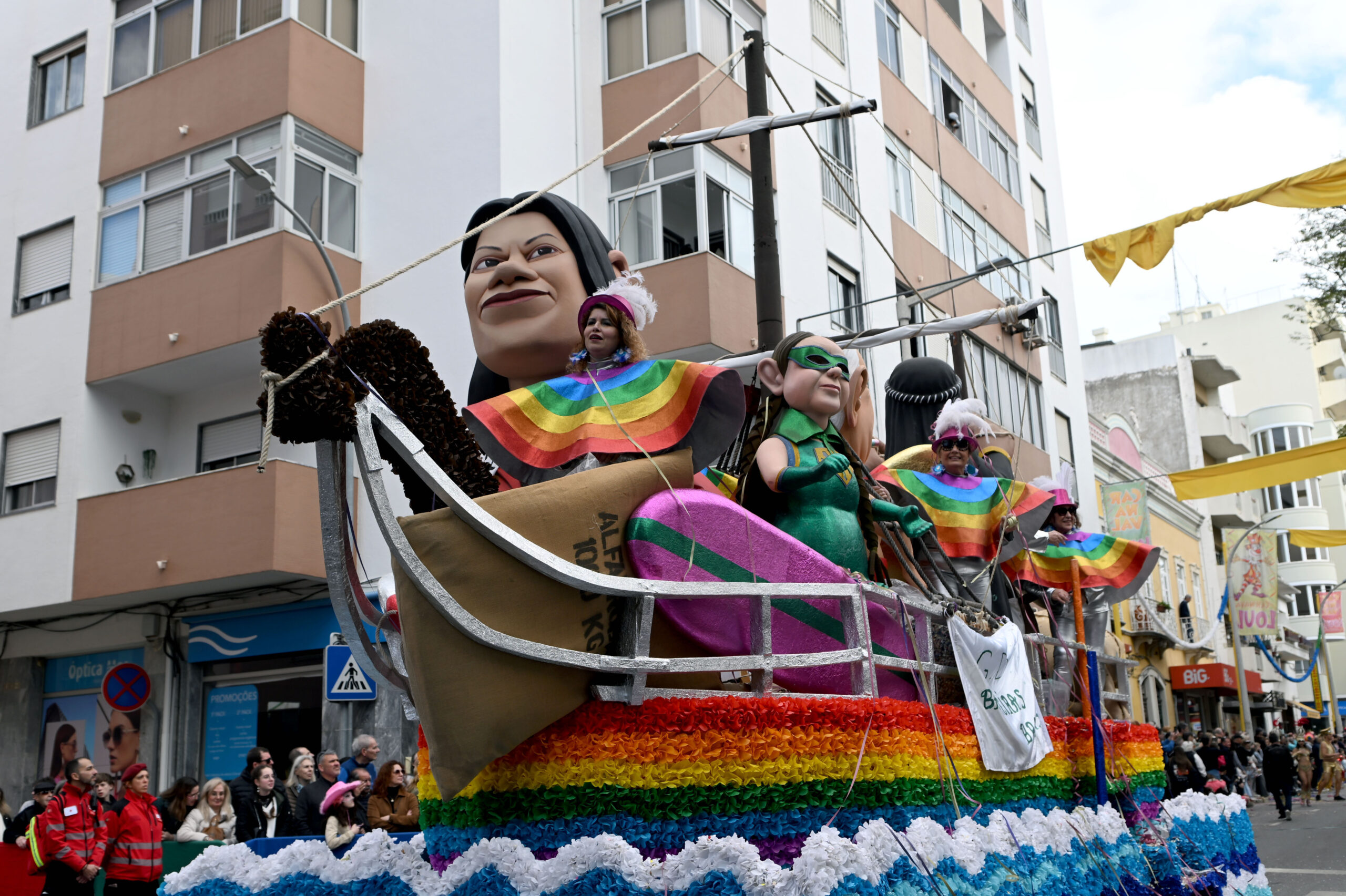 A sátira voltou a marcar presença, com recriações de episódios da vida política, social e desportiva, tanto nacional como internacional. Cristiano Ronaldo surgiu representado a carregar às costas o selecionador nacional, Roberto Martinez, numa alusão à quase certa participação do jogador no próximo Mundial, nos Estados Unidos. Georgina Rodriguez também integrou o carro alegórico.