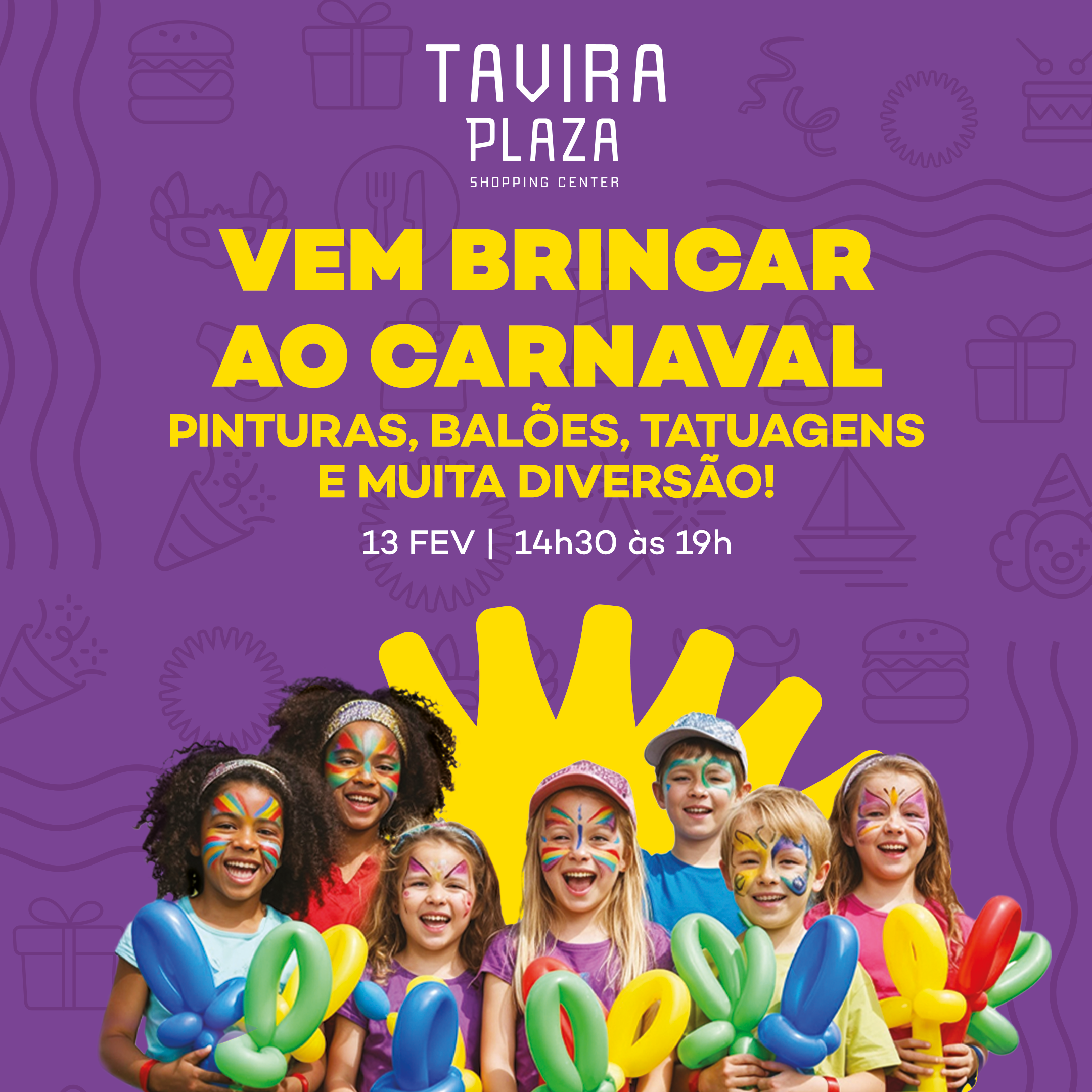 O Tavira Plaza vai assinalar o Carnaval com uma iniciativa dirigida ao público infantil, promovendo, no próximo dia 13 de fevereiro, um atelier de pinturas faciais e tatuagens temporárias.