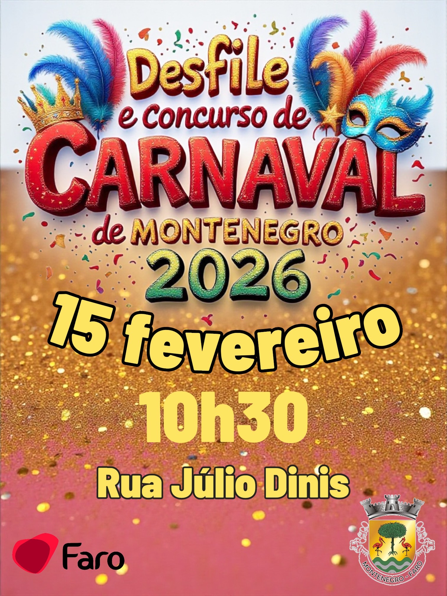 A Junta de Freguesia de Montenegro, em Faro, promove no próximo dia 15 de fevereiro, domingo, um Desfile de Carnaval, com início às 10:30, na Rua Júlio Dinis.
