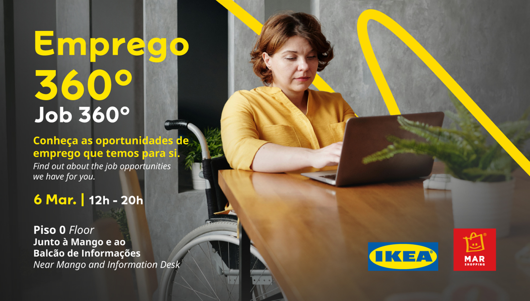 O MAR Shopping Algarve vai promover, no próximo dia 6 de março, a 5.ª edição do ‘Emprego 360º’, iniciativa que terá lugar no Piso 0, junto à loja IKEA e ao Balcão de Informações.