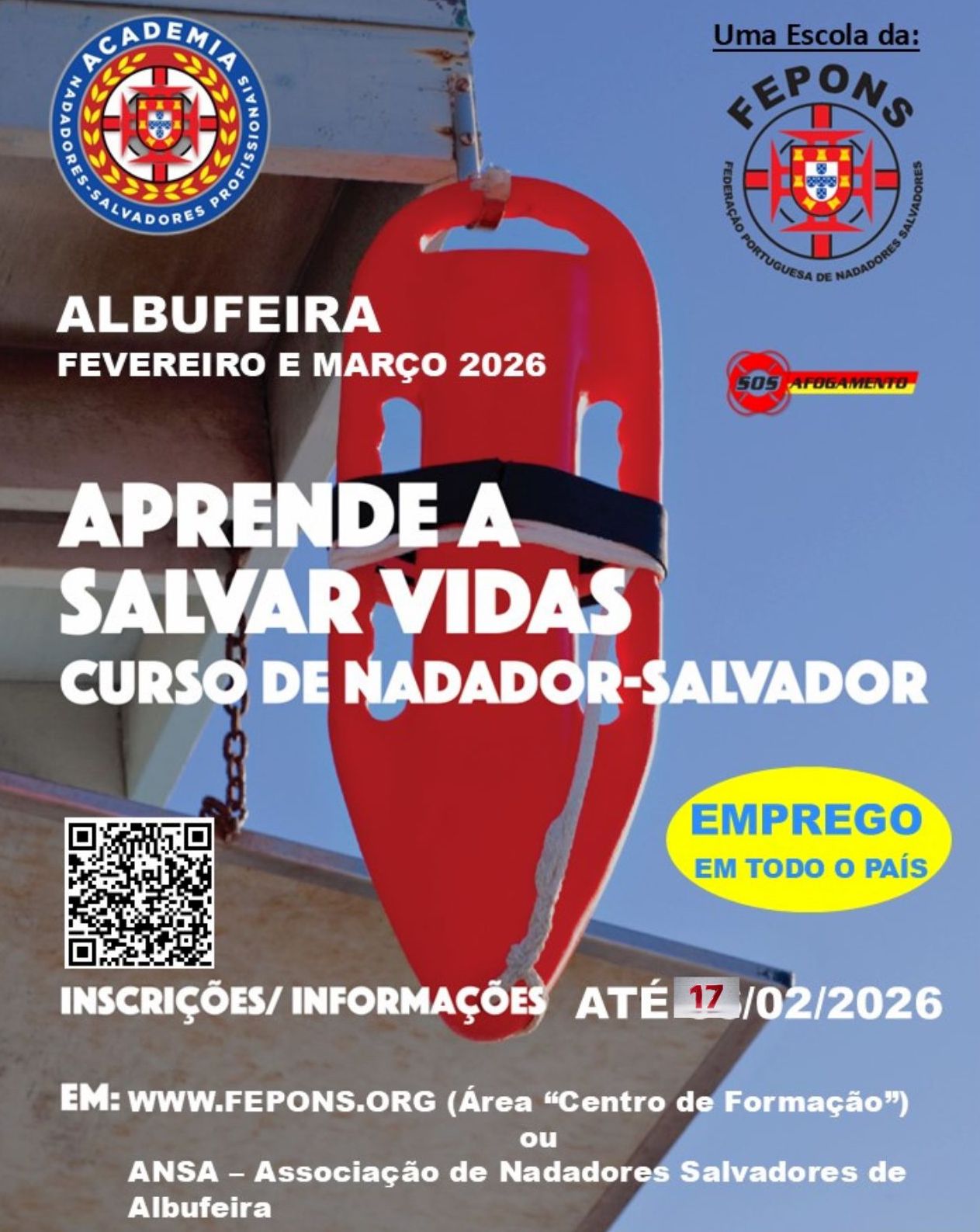 A ANSA – Associação de Nadadores Salvadores de Albufeira anunciou o adiamento da data do exame de admissão ao curso de nadadores-salvadores 2026, devido às atuais condições meteorológicas e ao elevado número de pedidos de informação recebidos.
