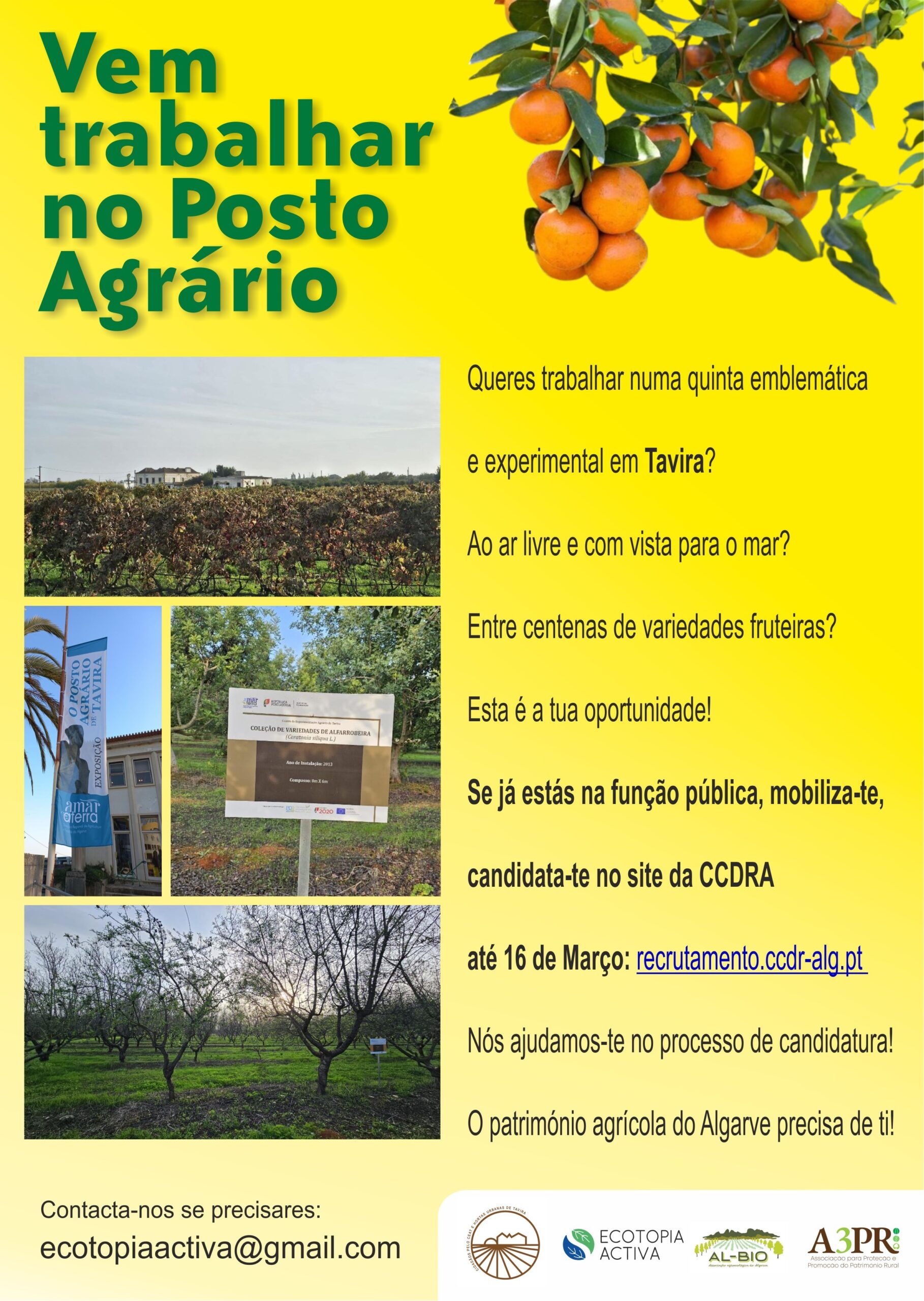 Segundo a Ecotopia Activa, “mais do que uma vaga de emprego, este é um compromisso com o futuro da agricultura e da sustentabilidade na região do Algarve. O Centro de Experimentação Agrária de Tavira (CEAT) é um pilar da nossa identidade regional, mas para continuar a sua missão, precisa urgentemente de novos profissionais”.