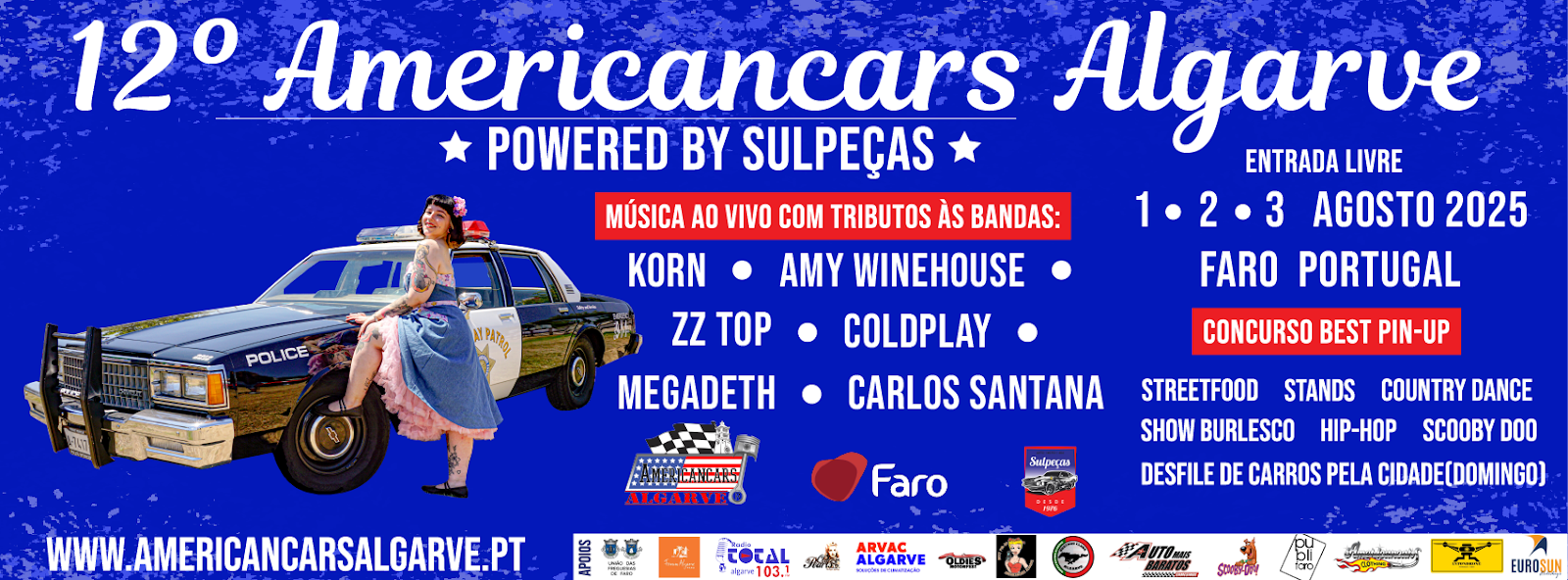 O Parque de Lazer das Figuras, em Faro, será o cenário de mais uma edição do Americancars Algarve, que decorre entre os dias 1 e 3 de agosto, com entrada gratuita e uma programação pensada para toda a família. Trata-se do 12.º Encontro de Carros Americanos, considerado um dos maiores e mais singulares eventos do género em Portugal.