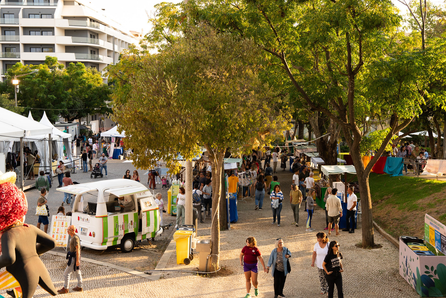 A feira mantém ainda uma política rigorosa de sustentabilidade, com medidas como “plástico zero, uso de materiais compostáveis ou reutilizáveis, água filtrada gratuita para todos, incentivo ao uso de copo próprio, mercado de trocas de roupa e livros, oficinas de reparação gratuita e energia limpa, sem geradores a combustível fóssil”.
