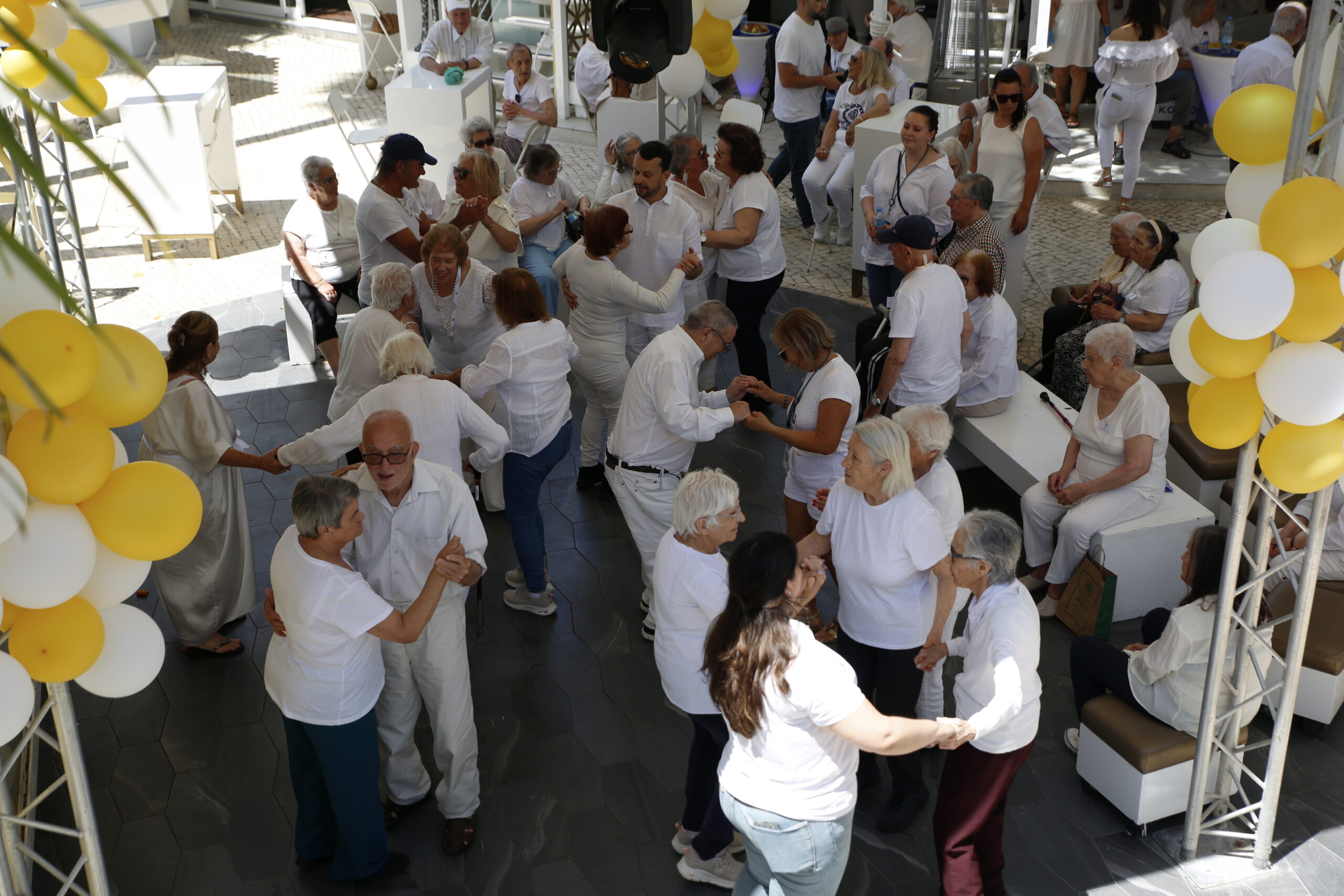 O Libertos Club, em Albufeira, recebeu no passado dia 23 de maio uma animada Festa Branca Sénior, promovida pela AHSA — Associação Humanitária Solidariedade Albufeira. O evento reuniu 120 seniores, entre utentes do Centro de Dia do Rossio — gerido pela AHSA — e de outras quatro instituições do concelho, nomeadamente o Centro Paroquial de Paderne, o Centro Social Quinta da Palmeira, a Santa Casa da Misericórdia de Albufeira e a Fundação António Silva Leal.