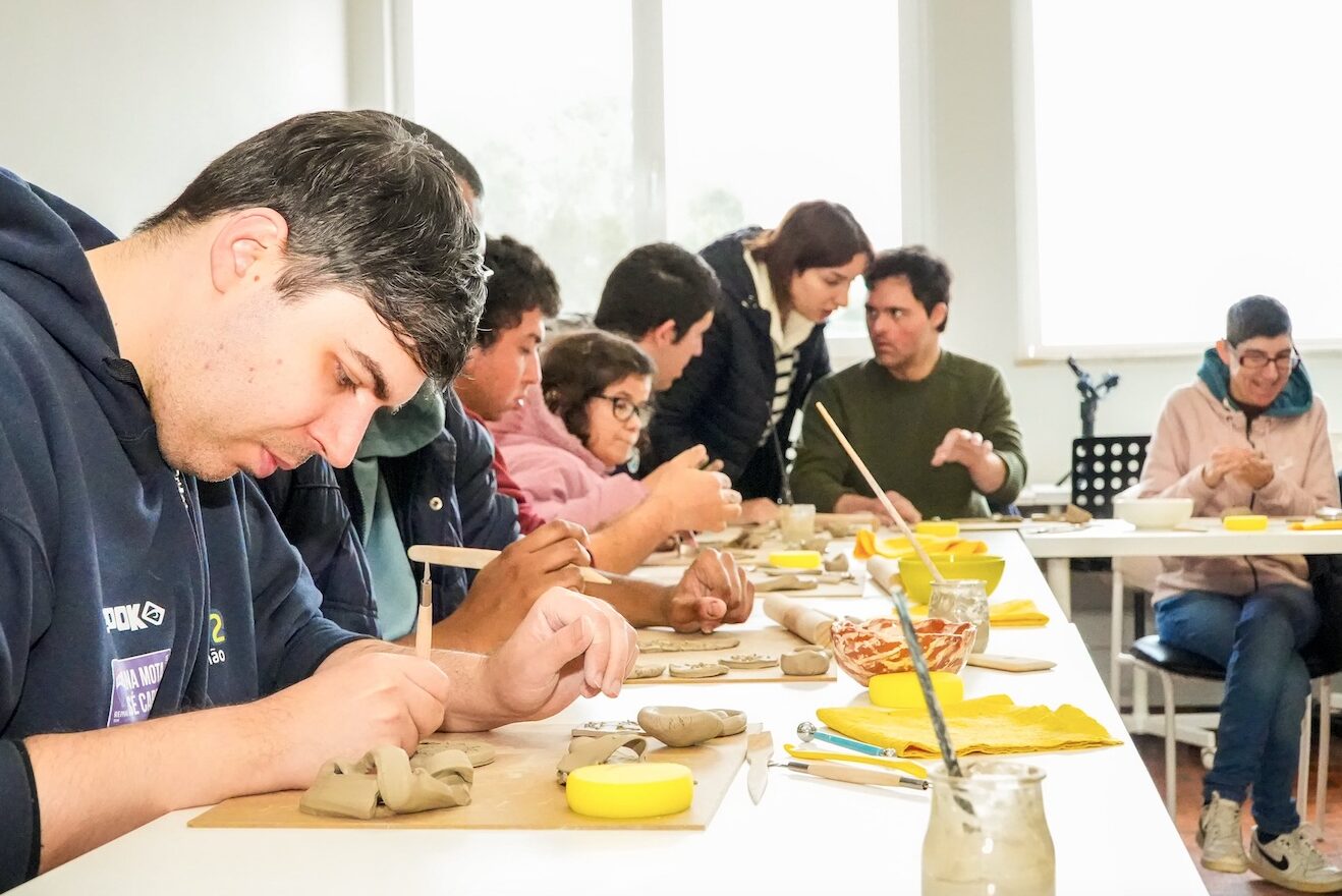 A sessão teve como mote a inclusão social, a partilha, a amizade e a igualdade de oportunidades. O Atelier 1+1 apoiou a iniciativa, ficando responsável pela cozedura das peças produzidas.