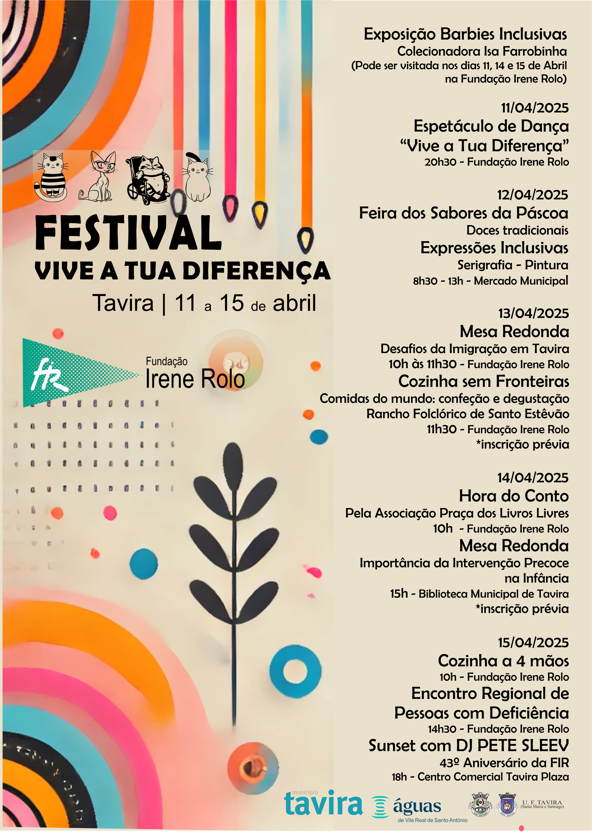 Ao longo de cinco dias, o festival contará com várias iniciativas pensadas para envolver toda a comunidade. A 11 de abril, pelas 20:30, terá lugar o espetáculo de dança “Vive a Tua Diferença”, na Fundação Irene Rolo, com a participação de projetos artísticos locais que proporcionarão um momento de celebração através do movimento e da arte.