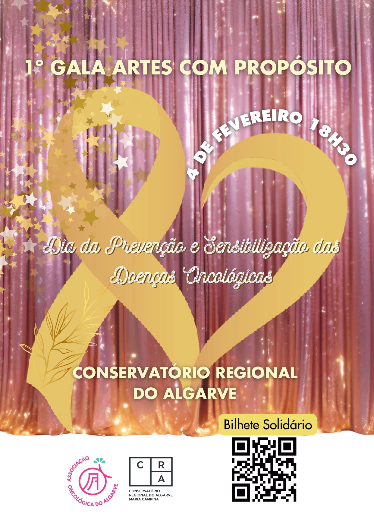 O Conservatório Regional do Algarve Maria Campina, em Faro, recebe no próximo dia 4 de fevereiro, data em que se assinala o Dia da Prevenção e Sensibilização das Doenças Oncológicas, a 1.ª Gala “Artes com Propósito”, promovida pela Associação Oncológica do Algarve (AOA).