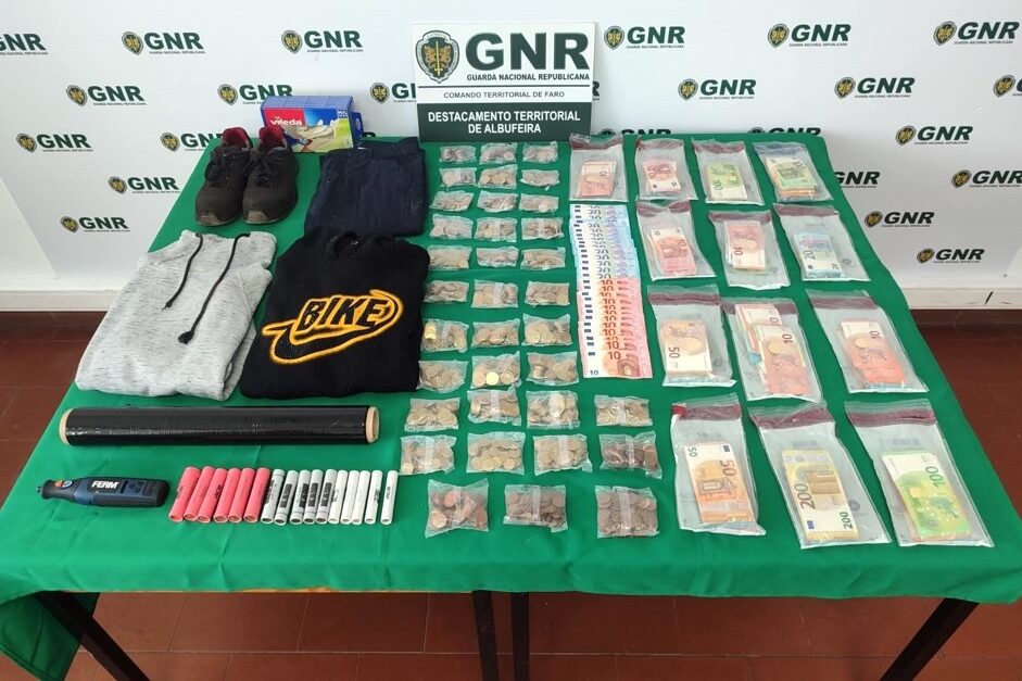 Entre o material encontrado e apreendido estavam 23.688 euros e um berbequim de precisão, ferramenta que, segundo a GNR, foi “usada na prática do ilícito”.