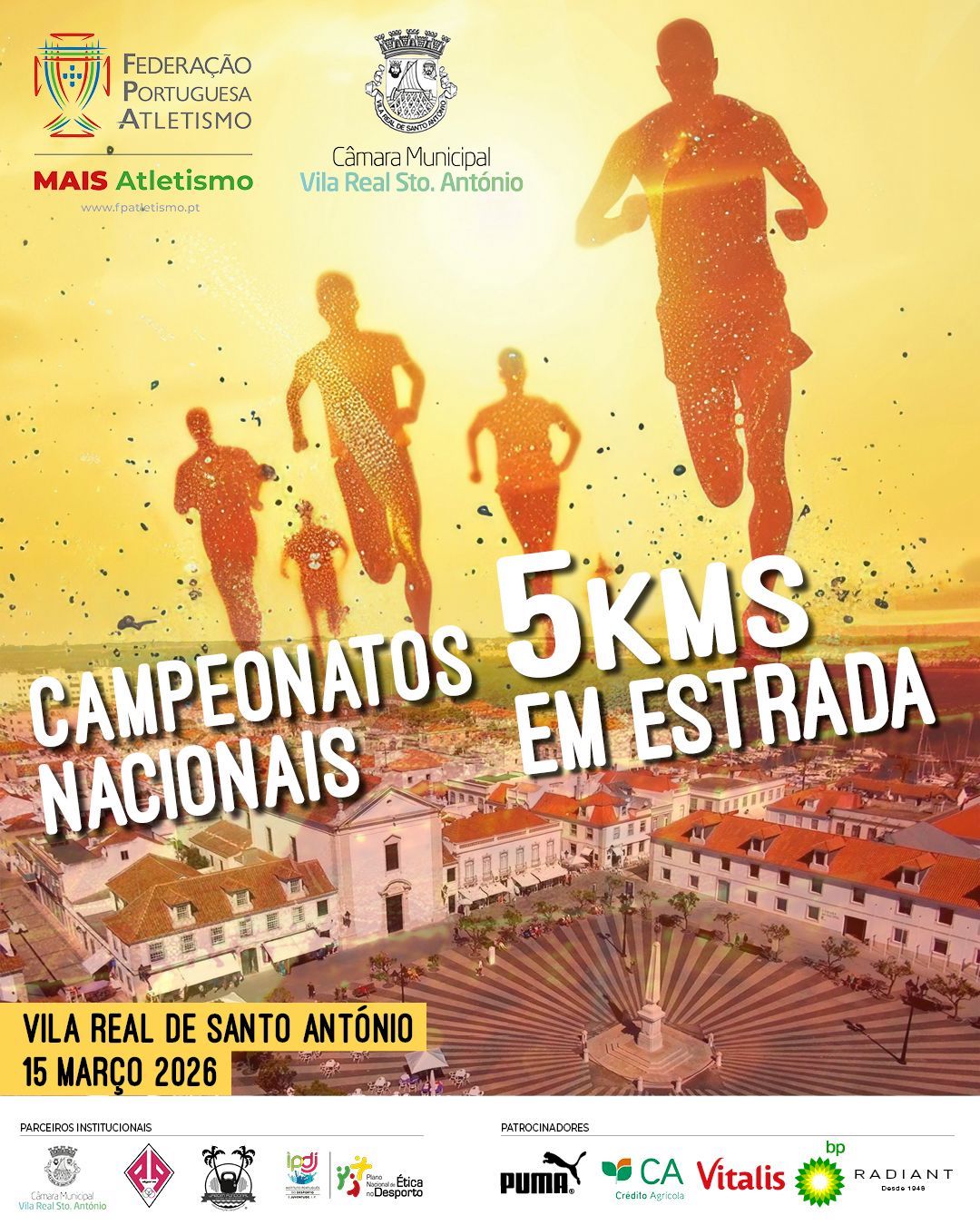 Vila Real de Santo António prepara-se para receber, no próximo 15 de março, o 1.º Grande Prémio Cidade Pombalina, evento que promete um dia de competição intensa no atletismo, com início marcado para as 9:00, junto ao Farol da cidade, local de partida e chegada da prova.
