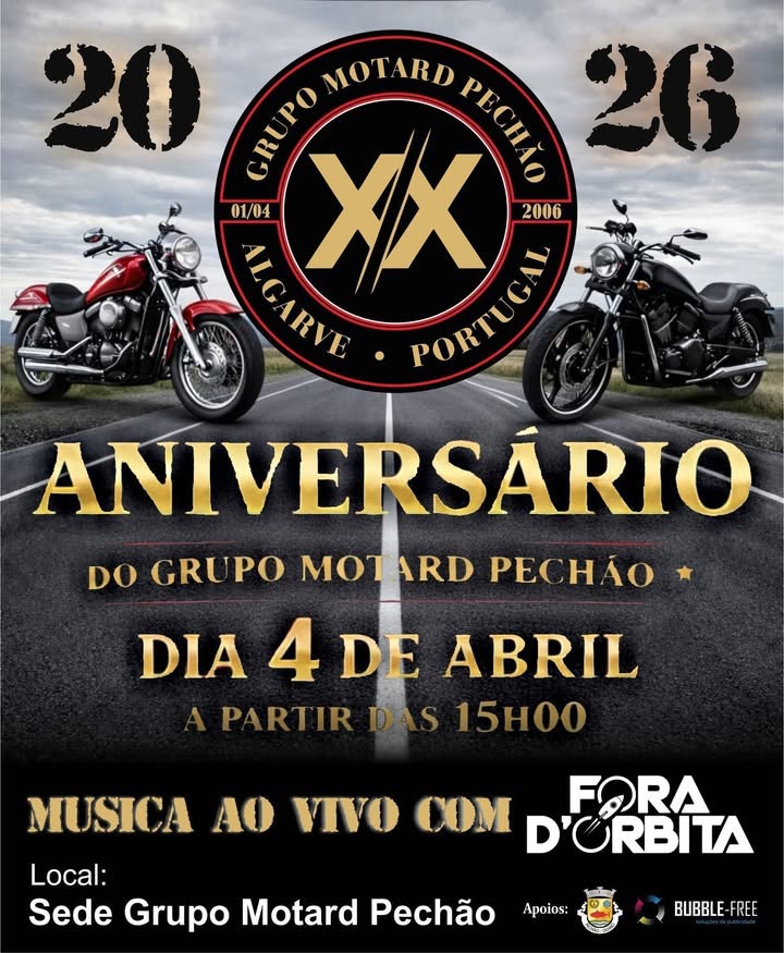 O XX aniversário do Grupo Motard de Pechão vai ser celebrado, este sábado, 4 de abril, numa iniciativa que decorrerá na sede da associação e que assinala duas décadas de atividade.
