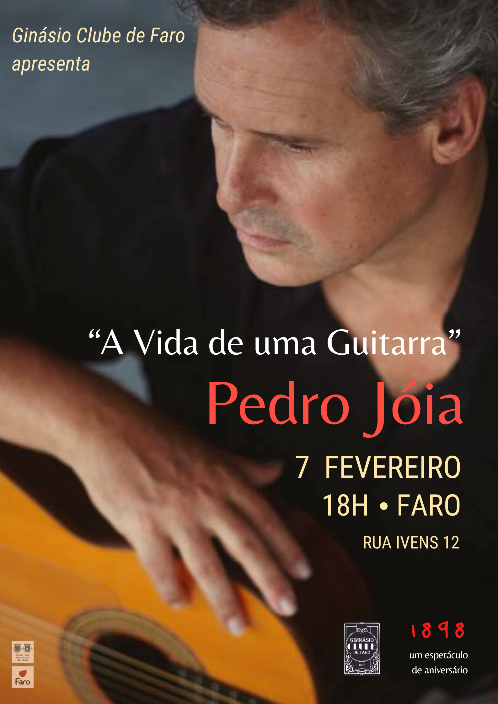 De acordo com a organização, “o Ginásio Clube de Faro, fundado em 1898, comemora anualmente o seu aniversário com um espetáculo criado em exclusivo”. Este ano, o clube propõe um espetáculo singular, no qual “será contada a história da Vida de uma Guitarra por Pedro Jóia”.