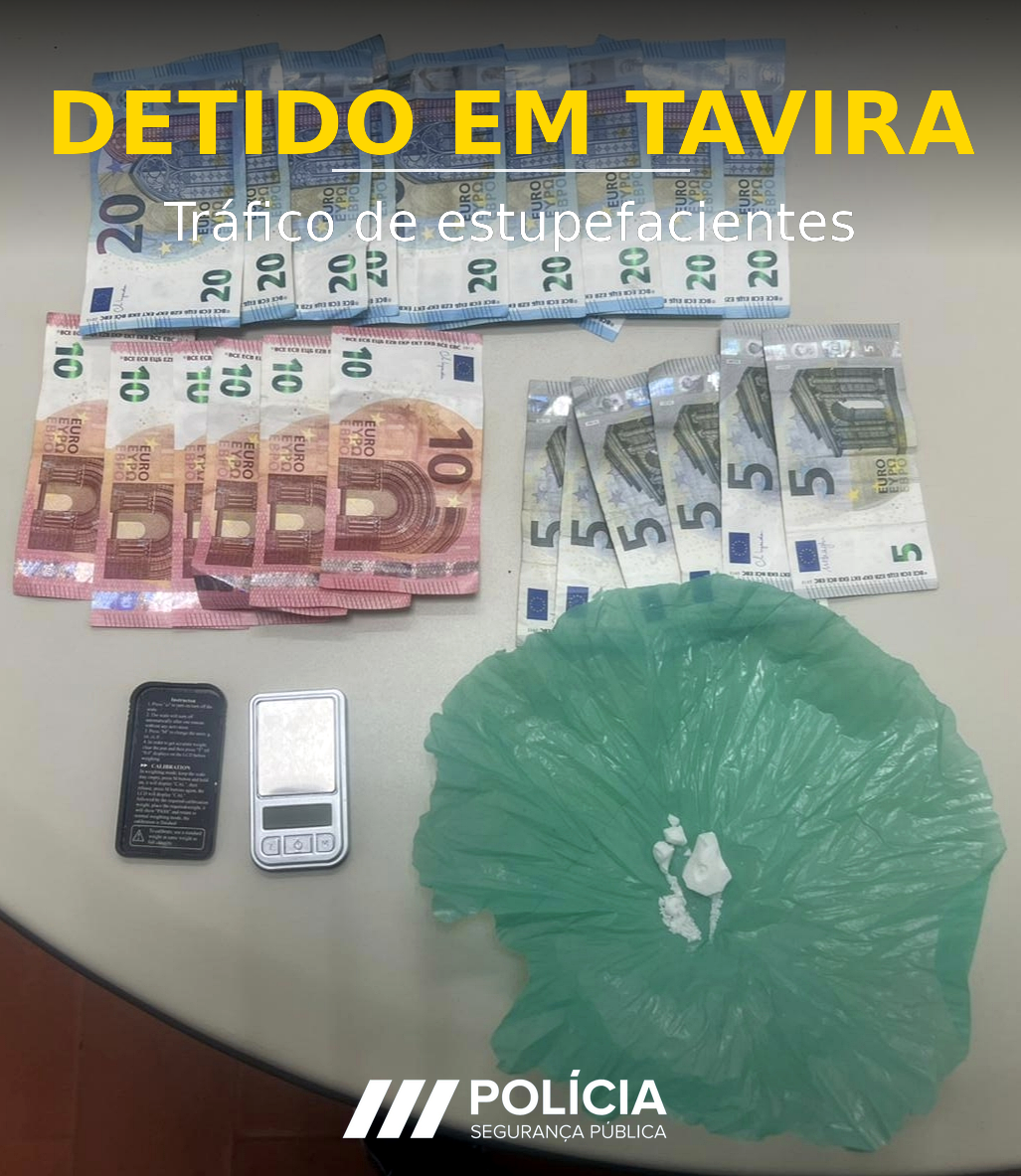 A Polícia de Segurança Pública (PSP) deteve, na passada segunda-feira, 2 de março, um homem de 31 anos na cidade de Tavira, suspeito da prática do crime de tráfico de estupefacientes.