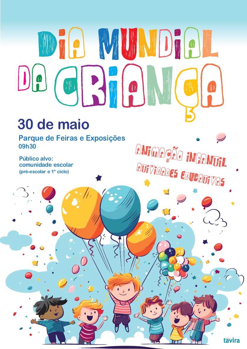 O Município de Tavira vai assinalar o Dia Mundial da Criança com uma grande festa dedicada à comunidade escolar, a ter lugar no próximo dia 30 de maio, no Parque de Feiras e Exposições da cidade. A iniciativa destina-se a todos os alunos do pré-escolar e do 1.º ciclo do ensino básico, das redes pública e privada, prevendo-se a participação de cerca de 1500 crianças.