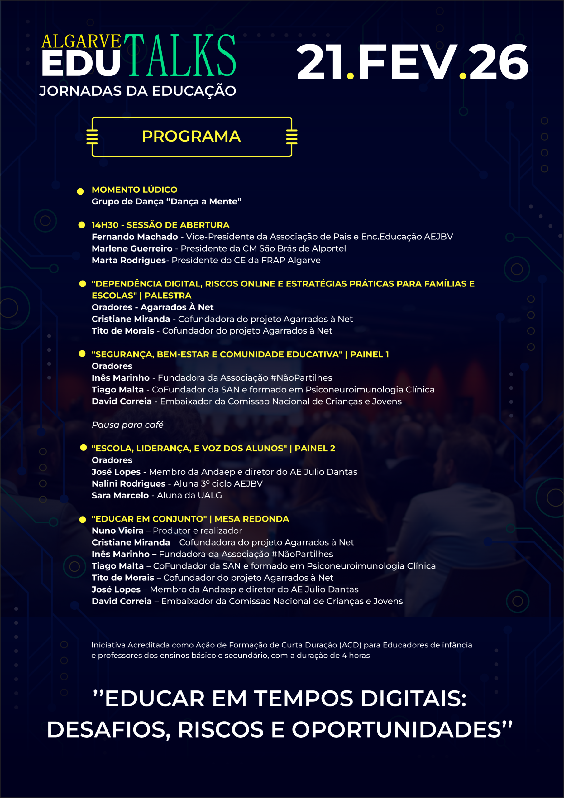 A iniciativa encontra-se acreditada como Ação de Formação de Curta Duração (ACD) para educadores e professores dos ensinos básico e secundário, constituindo, segundo a organização, uma oportunidade de atualização em matérias emergentes e socialmente relevantes.
