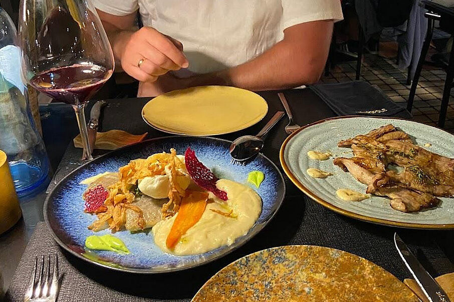 O menu inclui ainda pratos, como açorda de gambas, por 19,5 euros; caril de gambas com abacaxi, por 23 euros; tranche de salmão, por 26,90 euros; e bacalhau fresco, por 27,90 euros. Para quem prefere opções sem carne ou peixe, há risotto de cogumelos por 23 euros e gnocchi vegetariano por 24 euros.