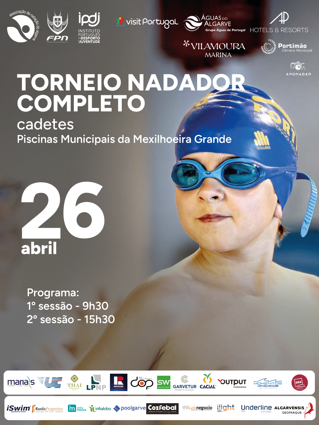 As Piscinas Municipais da Mexilhoeira Grande acolhem, no próximo dia 26 de abril, o Torneio Nadador Completo – Cadetes, uma iniciativa promovida pela Associação de Natação do Algarve.