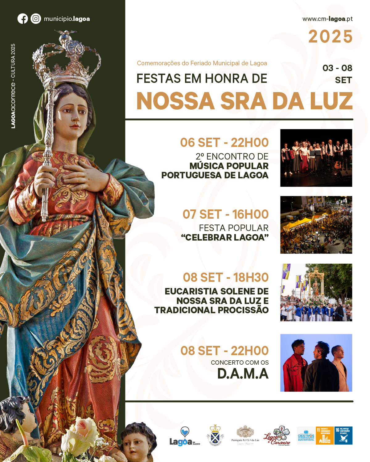 As Festas em Honra de Nossa Senhora da Luz e as comemorações do Feriado Municipal vão animar Lagoa nos dias 7 e 8 de setembro, com um programa que junta momentos culturais, religiosos e de convívio comunitário.