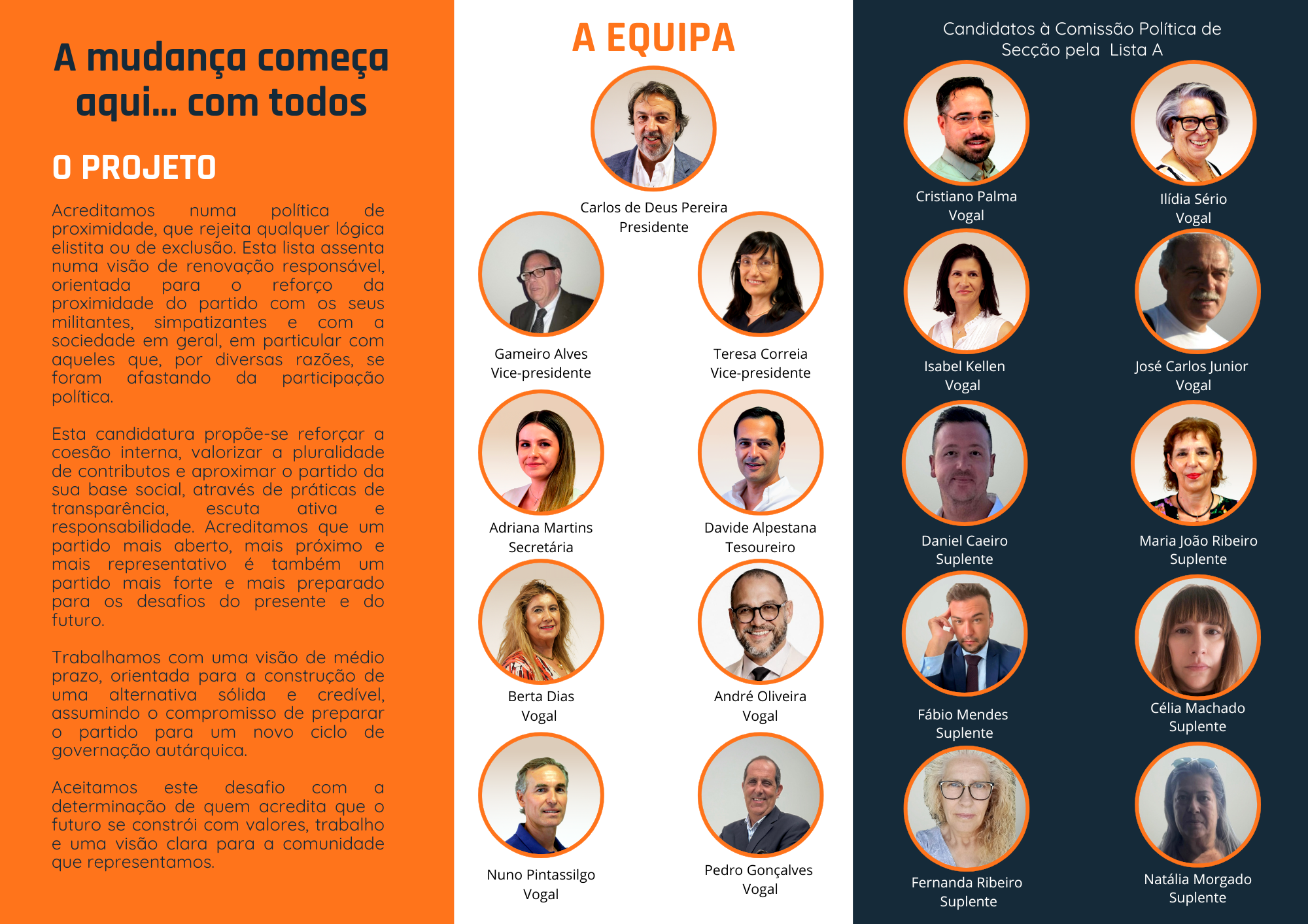 À Comissão Política de Secção candidata-se uma equipa liderada por Carlos de Deus Pereira, enquanto Ilídio Mestre é o nome indicado para presidente da Mesa da Assembleia de Secção.
