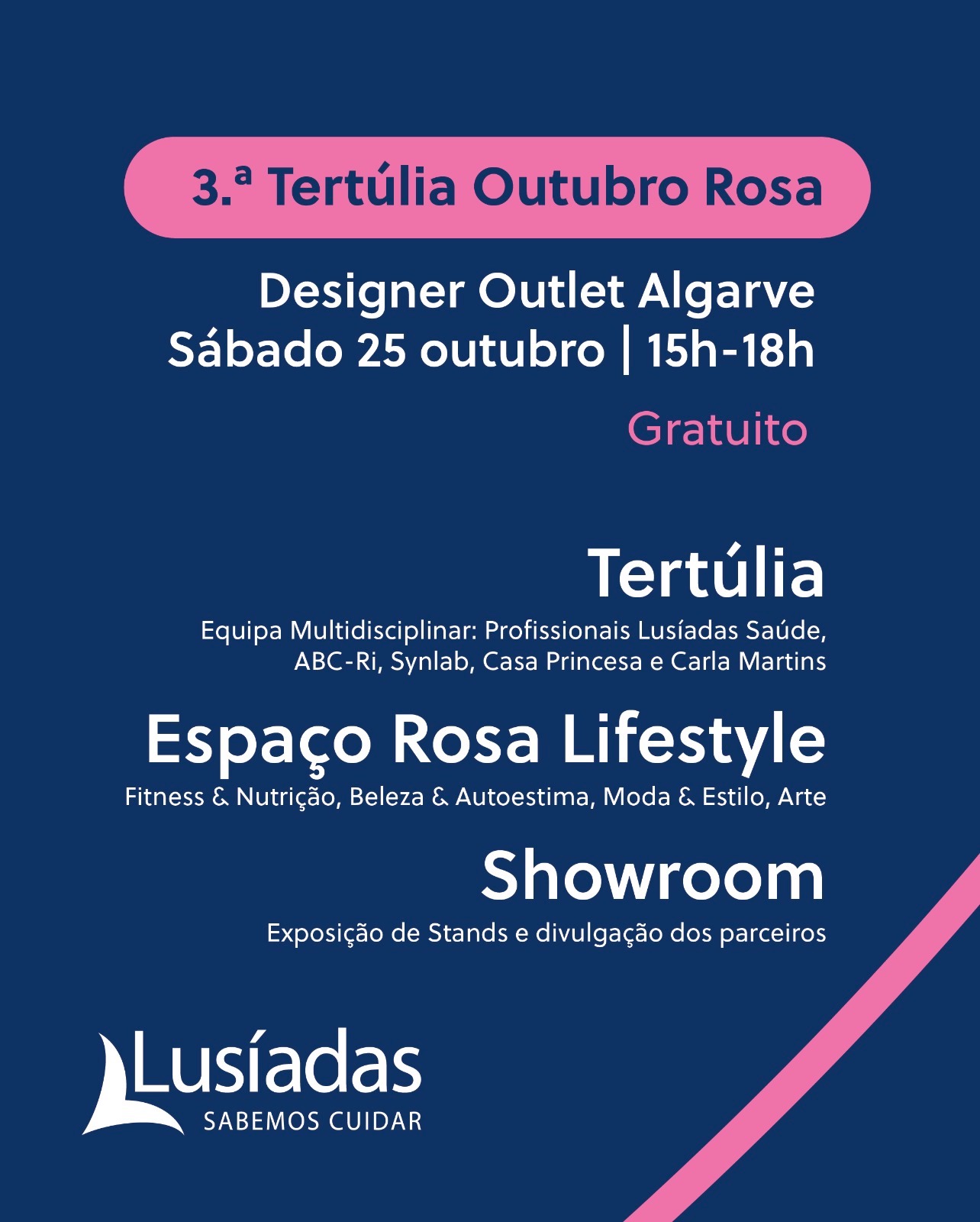 O Designer Outlet Algarve será também o palco da terceira edição da Tertúlia Outubro Rosa, marcada para o dia 25, entre as 15:00 e as 19:00, na Praça Algarve. O evento contará com espaços interativos, consultoria de imagem e ateliers criativos, num programa dedicado à sensibilização, educação e partilha em torno da oncologia e do bem-estar.