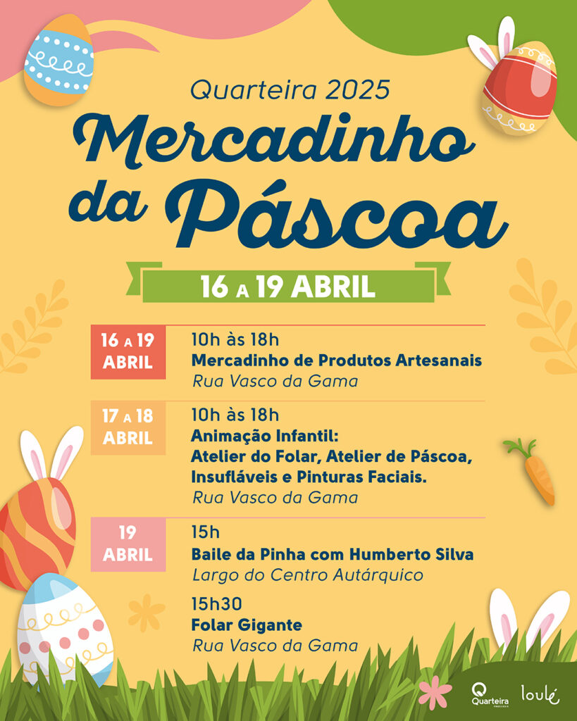 O Mercadinho da Páscoa está de regresso a Quarteira entre os dias 16 e 19 de abril, prometendo quatro dias de celebração com música, doces regionais, artesanato e diversas atividades para os mais pequenos.
