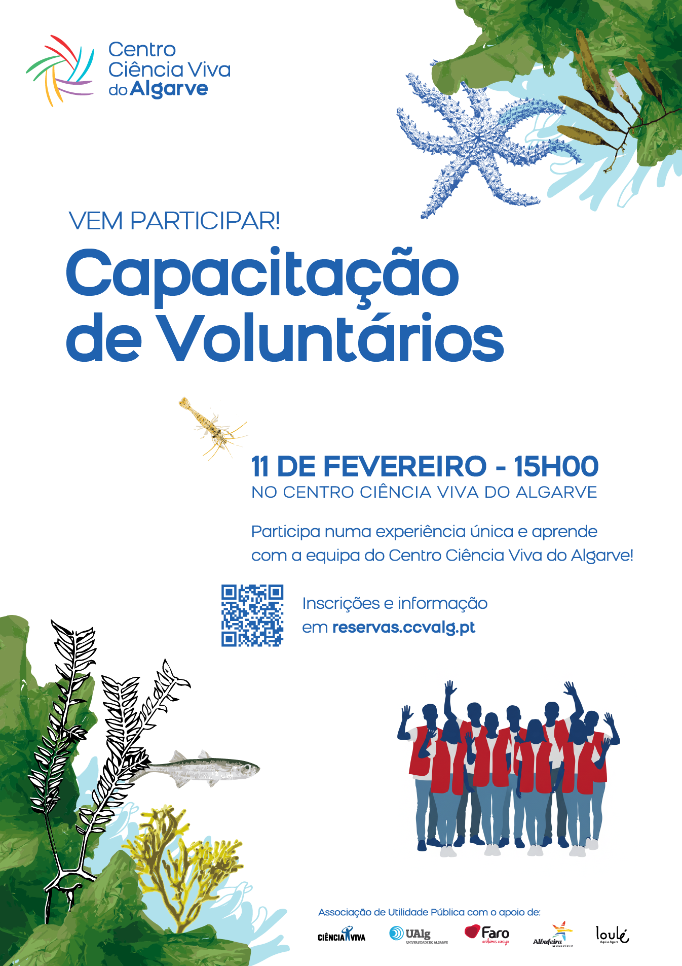 Durante a tarde, a partir das 15:00, o CCVAlg promove ainda uma Sessão de Capacitação de Voluntários, dirigida a todos os interessados em integrar a equipa da instituição. A iniciativa dá a conhecer o trabalho desenvolvido pelo Centro Ciência Viva do Algarve e as diferentes formas de participação ativa na promoção da ciência e da literacia científica junto do público.