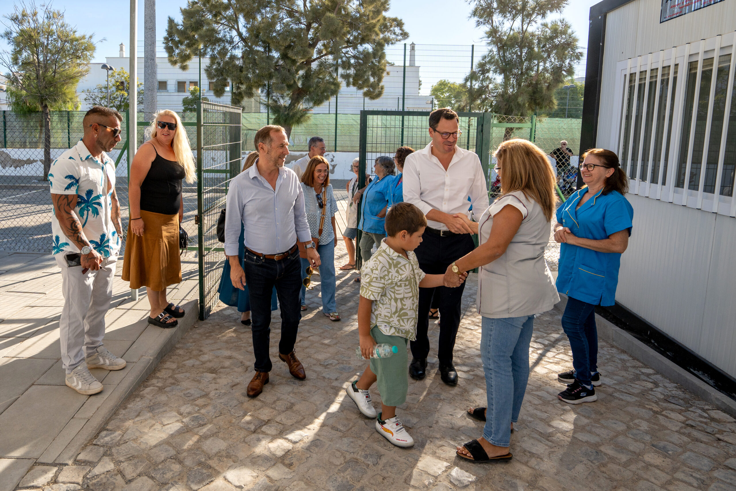 Uma das escolas visitadas foi a EB n.º 1, no Largo da Feira, onde estão em curso obras para a construção de novos edifícios escolares. “Olhão é um exemplo na área da educação e queremos continuar a sê-lo”, afirmou Ricardo Calé, sublinhando o apoio prestado aos alunos e famílias nos últimos anos.