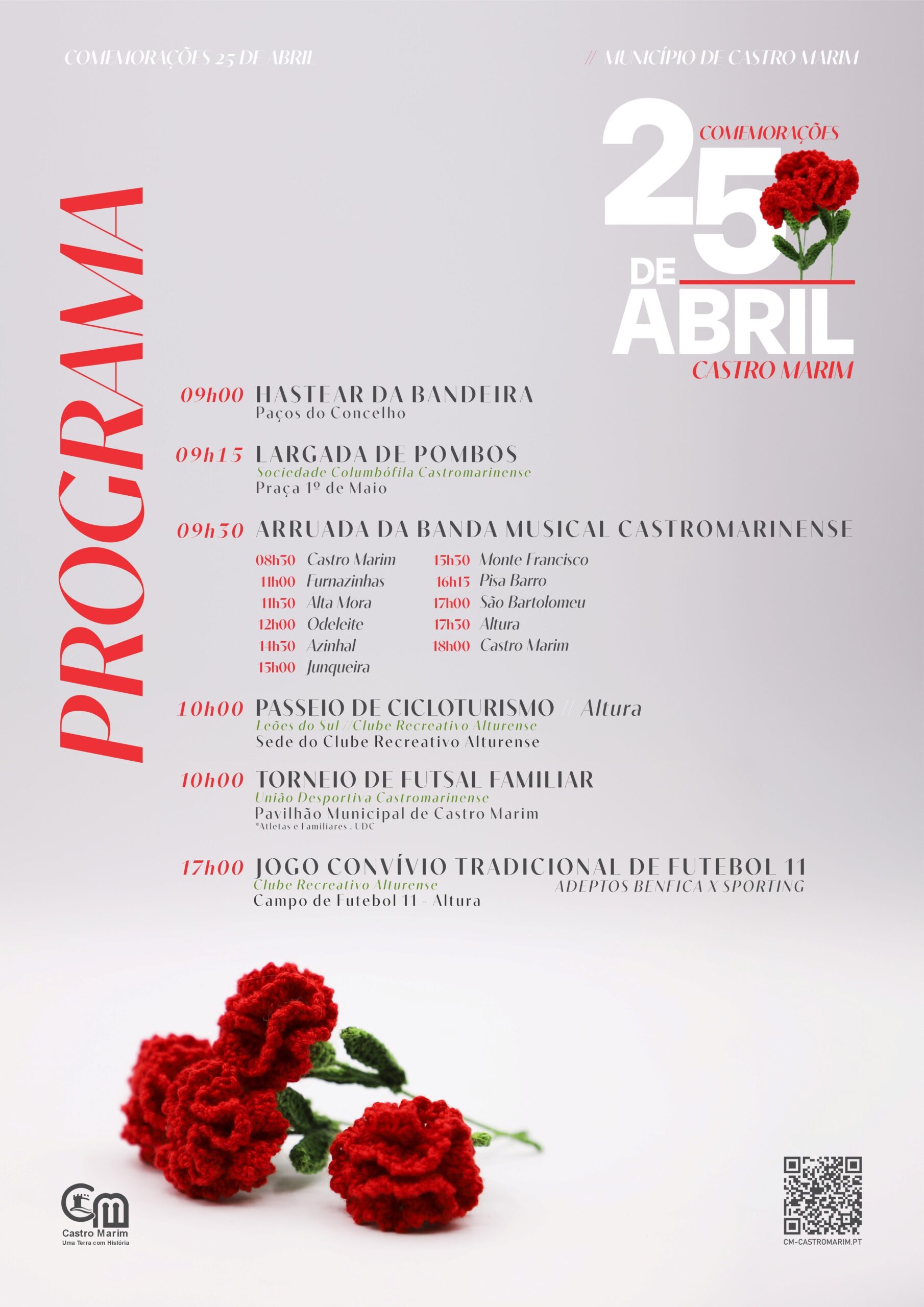 O Município de Castro Marim assinala o Dia da Liberdade, a 25 de abril, com um programa diversificado que integra iniciativas culturais, desportivas e comunitárias em vários pontos do concelho.
