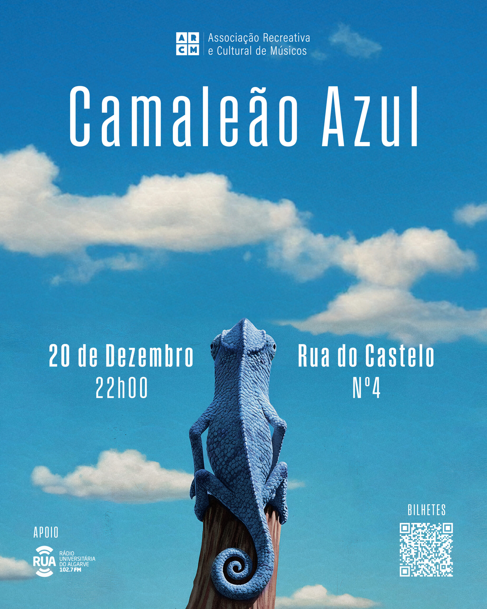 A Associação Recreativa e Cultural de Músicos (ARCM), em Faro, acolhe no dia 20 de dezembro, às 22:00, um espetáculo de Camaleão Azul, projeto criado por Tó Viegas e Viviane. A proposta artística distingue-se pela fusão entre música e poesia, explorando sonoridades que dialogam com a literatura algarvia.