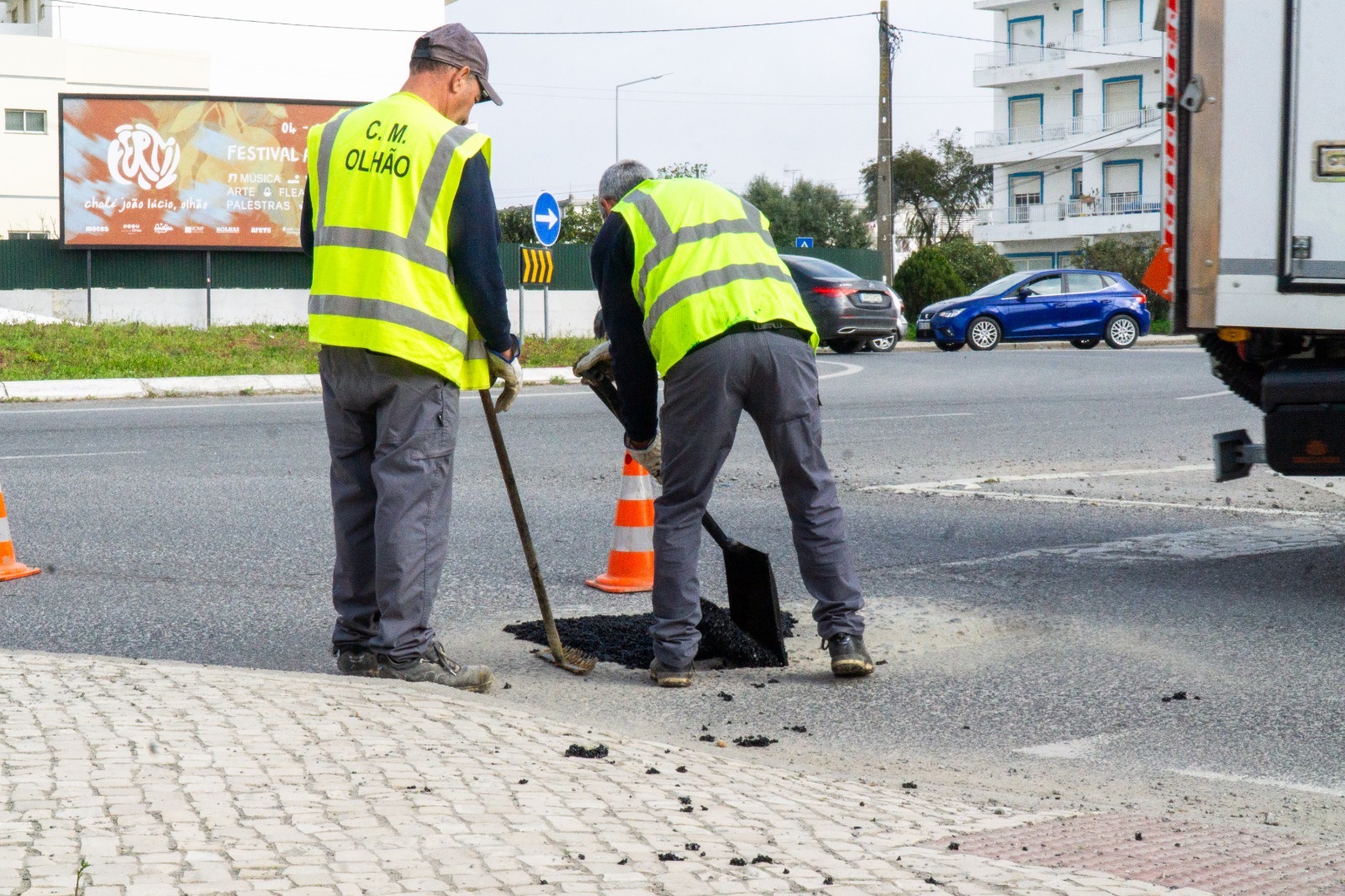 Na sequência de um período marcado por fortes intempéries que atingiram o país e também o concelho de Olhão, várias estradas ficaram degradadas. Parte dos danos resultou da interrupção temporária de obras em curso, agravadas pelas sucessivas tempestades. Com a melhoria do estado do tempo, os serviços municipais deram início imediato às intervenções consideradas prioritárias.