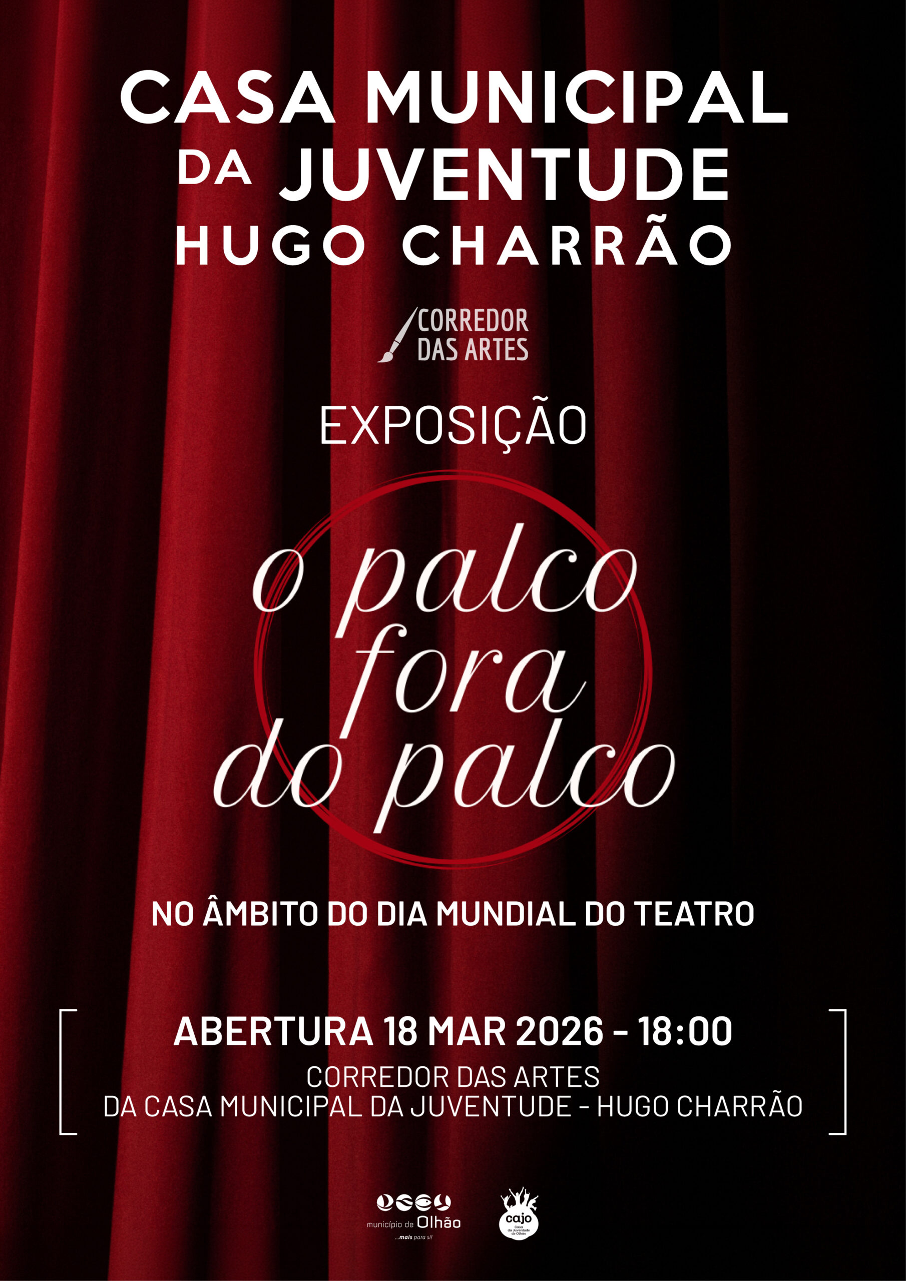 A Casa Municipal da Juventude – Hugo Charrão, em Olhão, inaugura no próximo dia 18 de março, às 18:00, a exposição “O Palco Fora do Palco”, patente no Corredor das Artes, numa iniciativa que assinala o mês em que se celebra o Dia Mundial do Teatro.