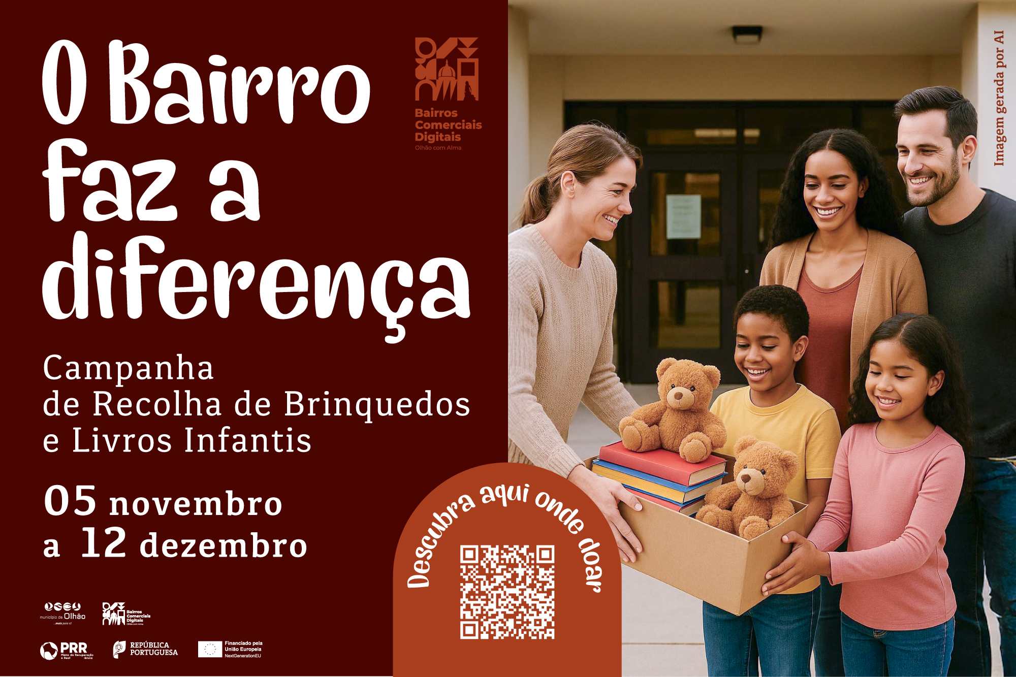 De 5 de novembro a 12 de dezembro, decorre em Olhão uma campanha de recolha de brinquedos e livros infantis, promovida pelos projetos municipais Bairros Comerciais Digitais e Radar Social, anunciou hoje o Município de Olhão.