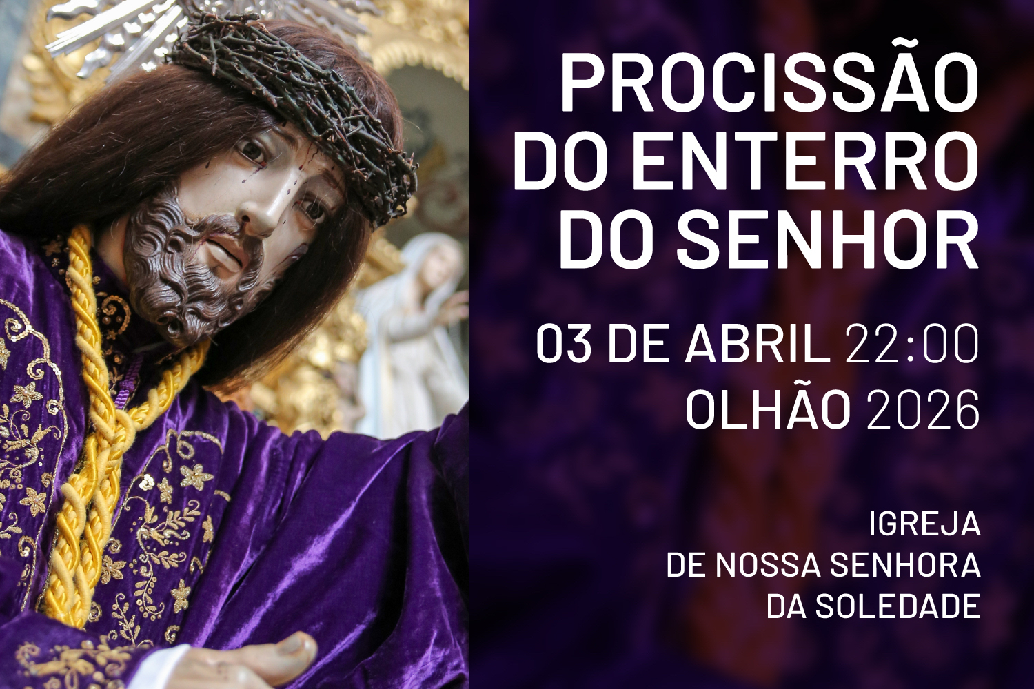 A Procissão do Enterro do Senhor realiza-se no próximo dia 3 de abril, pelas 22:00, com início na Igreja de Nossa Senhora da Soledade, em Olhão, assinalando um dos momentos mais solenes da Semana Santa no concelho.