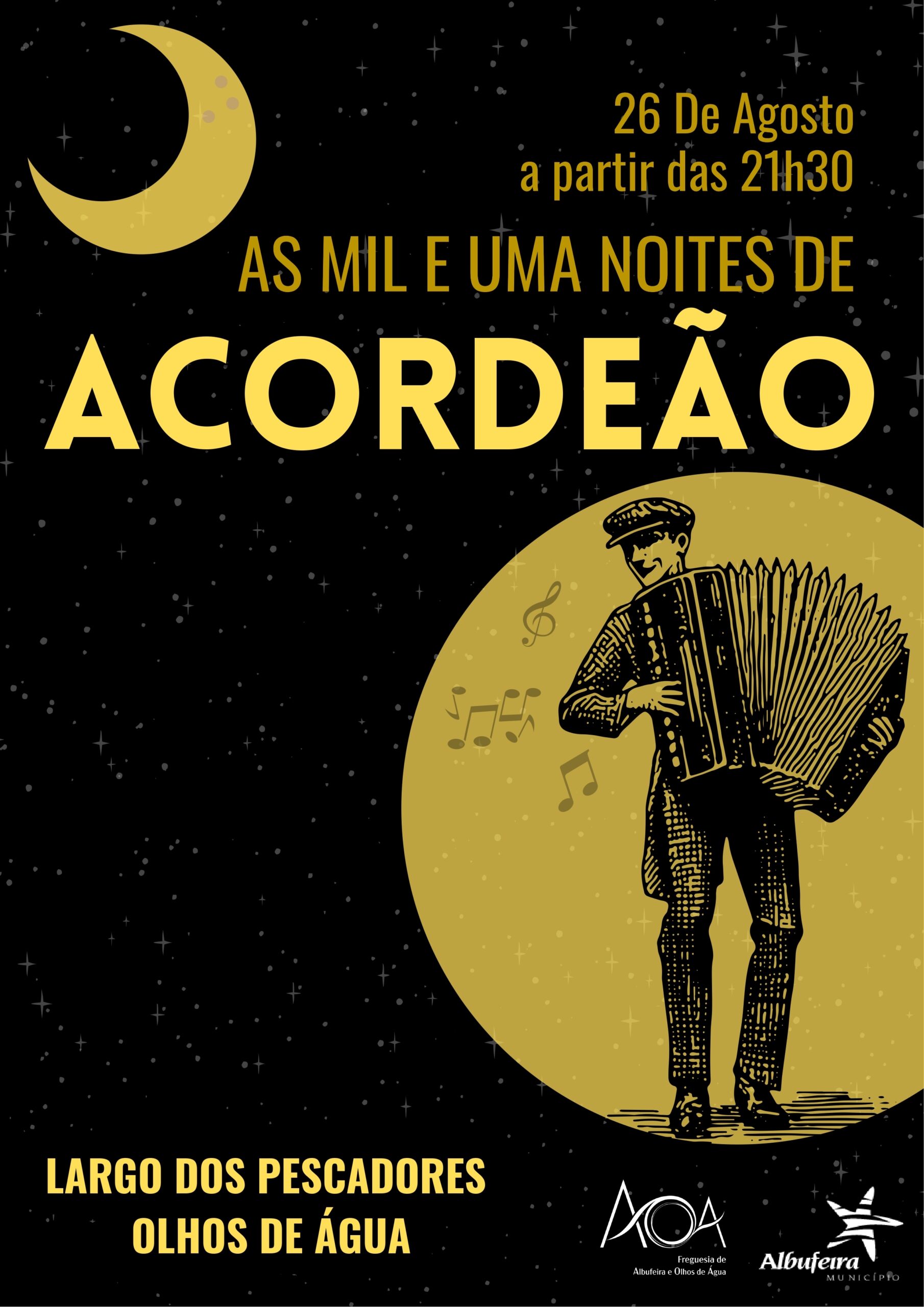 O acordeão, instrumento de fortes raízes no Algarve e presença incontornável no corridinho algarvio e nas charolas, volta a ser celebrado em Olhos de Água. A Junta de Freguesia de Albufeira e Olhos de Água anunciou mais uma edição de “As Mil e Uma Noites do Acordeão”, marcada para a próxima terça-feira, 26 de agosto, a partir das 21h30, no Largo dos Pescadores.
