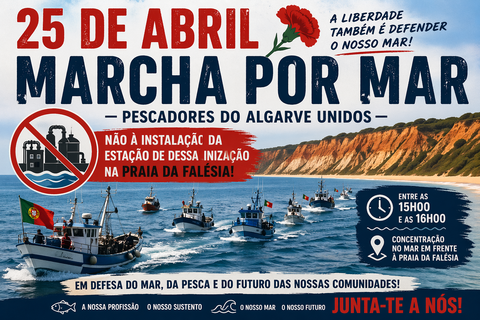 No próximo dia 25 de abril, os pescadores do Algarve vão realizar duas ações de protesto para manifestar a sua oposição à instalação de uma estação de dessalinização na zona da Praia da Falésia, em Albufeira.