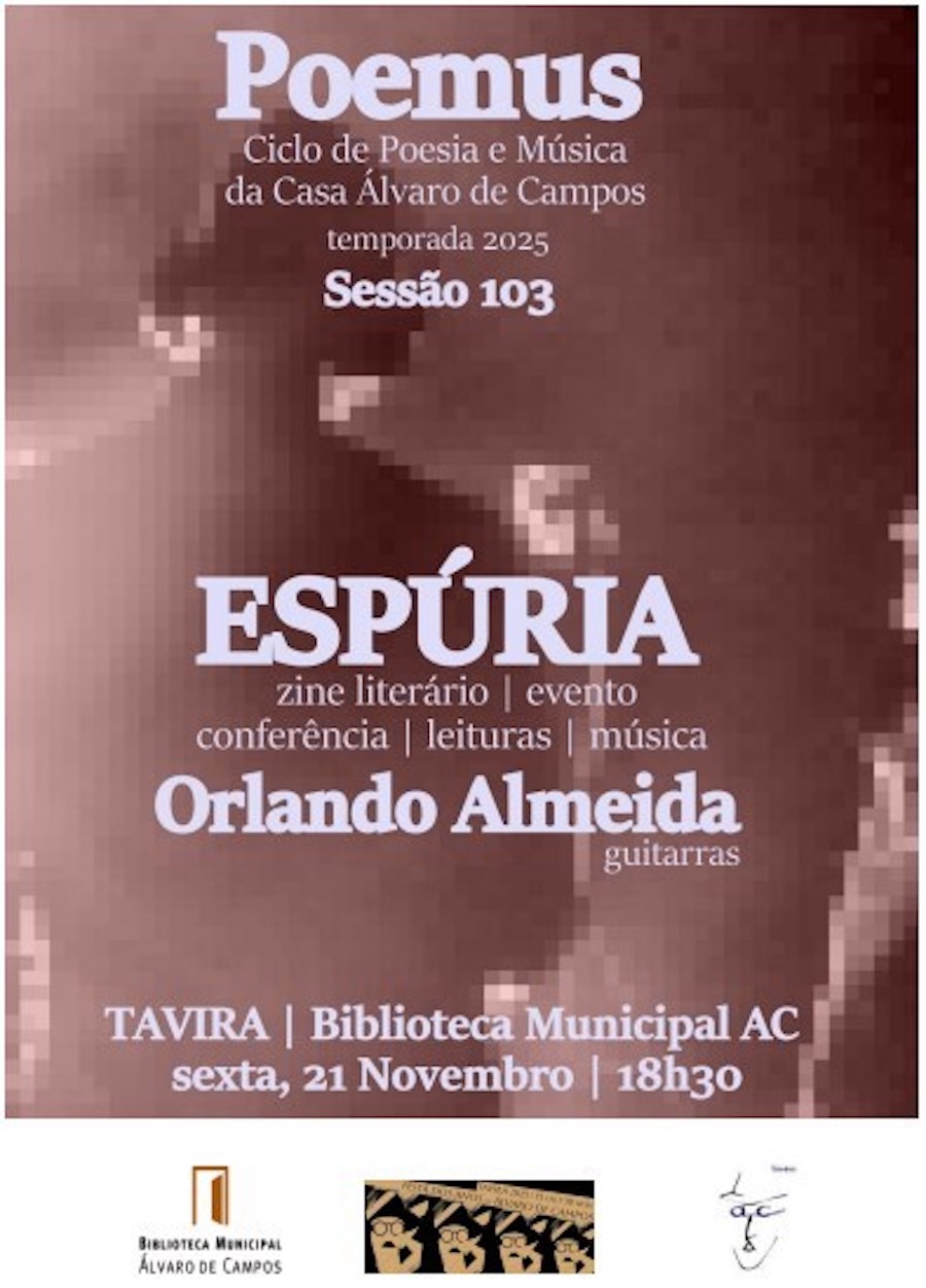 Sessão 103 do Poemus apresenta a zine literária “Espúria”, com leituras, conferência e música de Orlando Almeida, na biblioteca de Tavira.