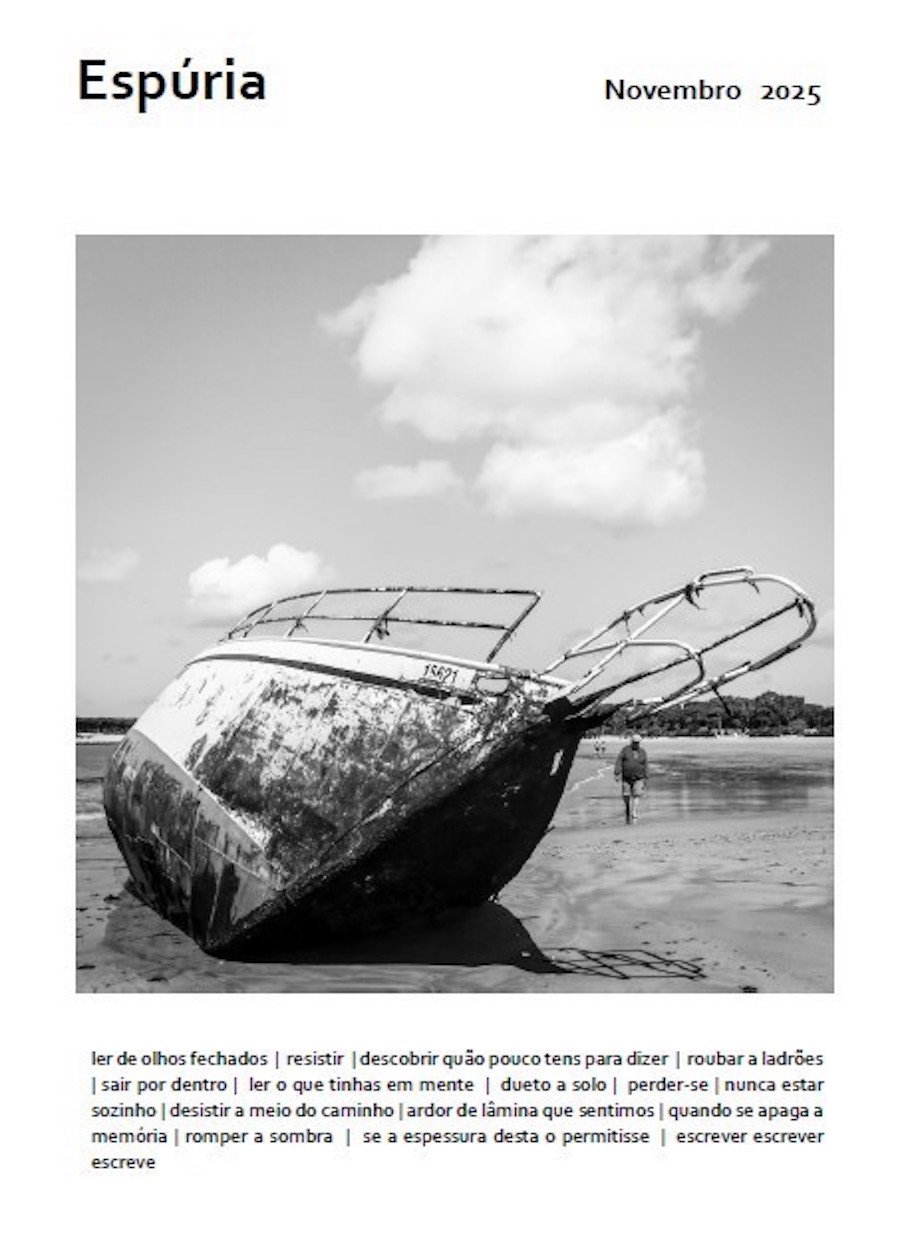 Nesta edição, o destaque vai para “Espúria”, uma zine literária que será distribuída gratuitamente durante o evento e que reúne textos de diversos autores, entre os quais Álvaro de Campos, Miguel Andrade, Carla Pereira, Naná Rebelo, Pedro Jubilot, Armando Correia, Sara Monteiro, Luís Ene, Dário Agostinho, Paulo Moreira, Reinaldo Barros, Marco Mackaaij, Margarida Maria Rocha, Rogério Cão, Vítor Gil Cardeira e Eduardo Vaz. A fotografia é da autoria de Ana Gouveia.