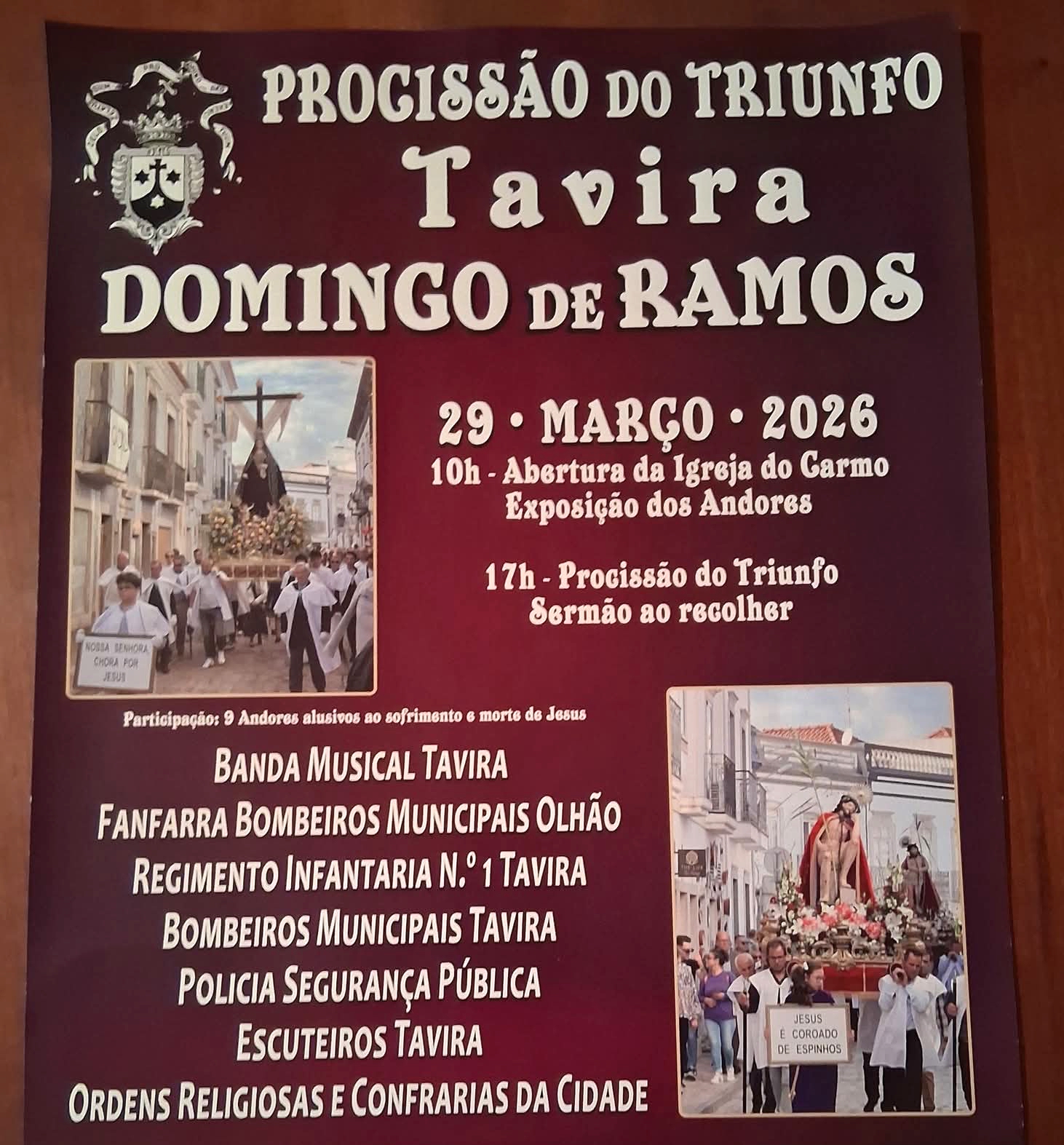 A cidade de Tavira volta a assinalar o Domingo de Ramos com a realização da tradicional Procissão do Triunfo, que decorre no próximo dia 29 de março.