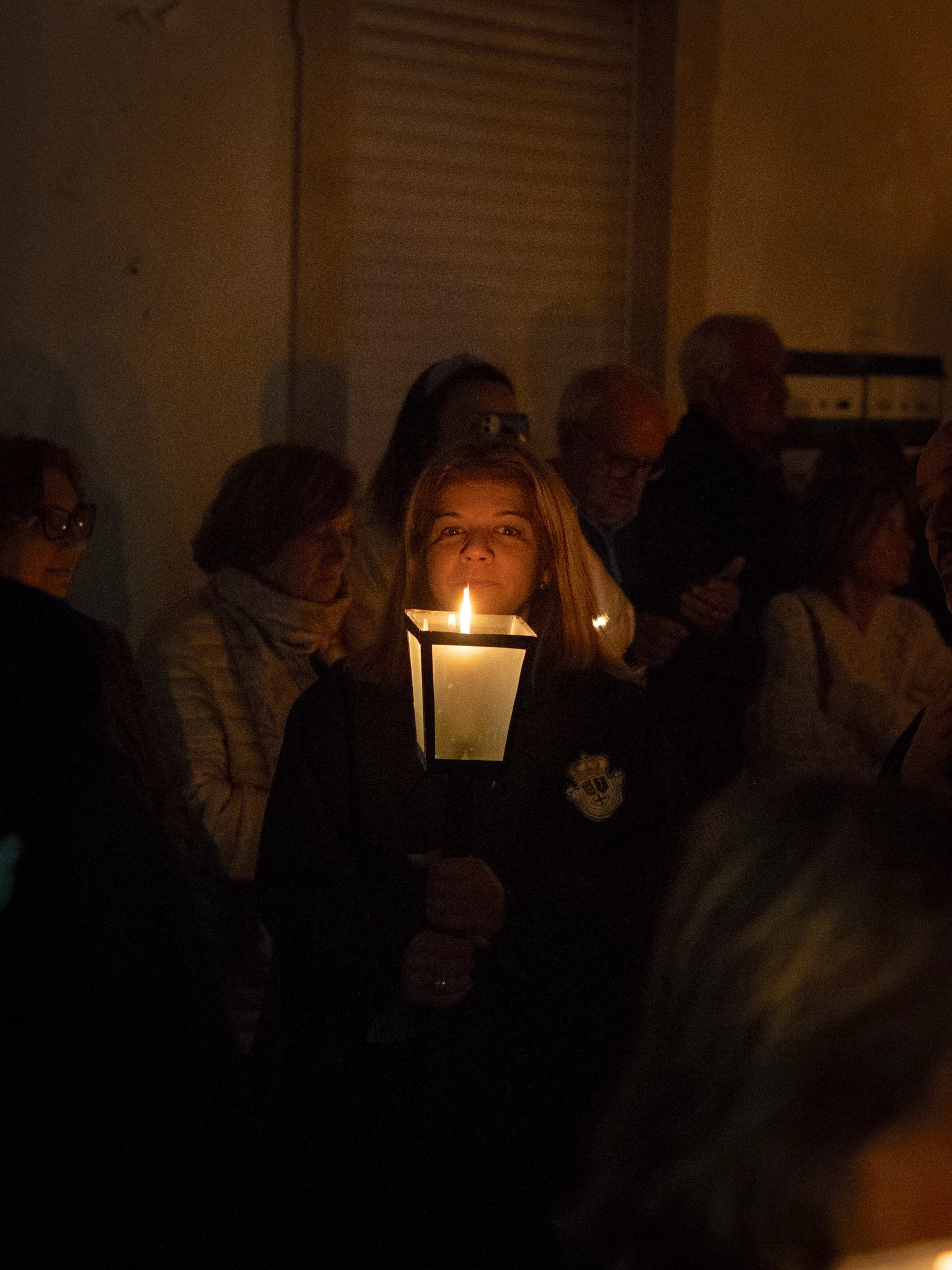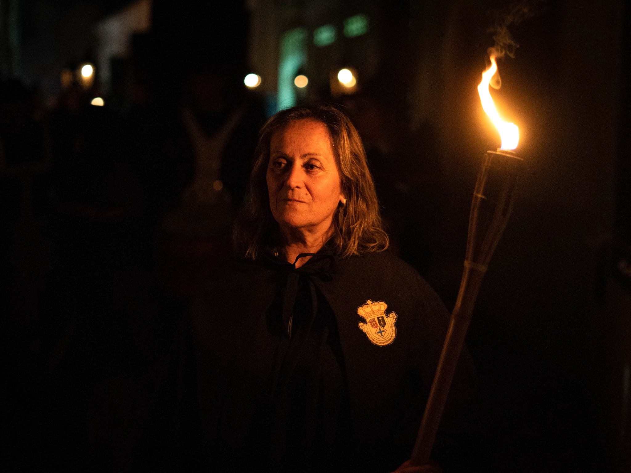 Durante o percurso, a iluminação pública é desligada, criando um cenário intimista, iluminado apenas por velas, archotes e candeias, o que reforça o caráter simbólico e espiritual da celebração.