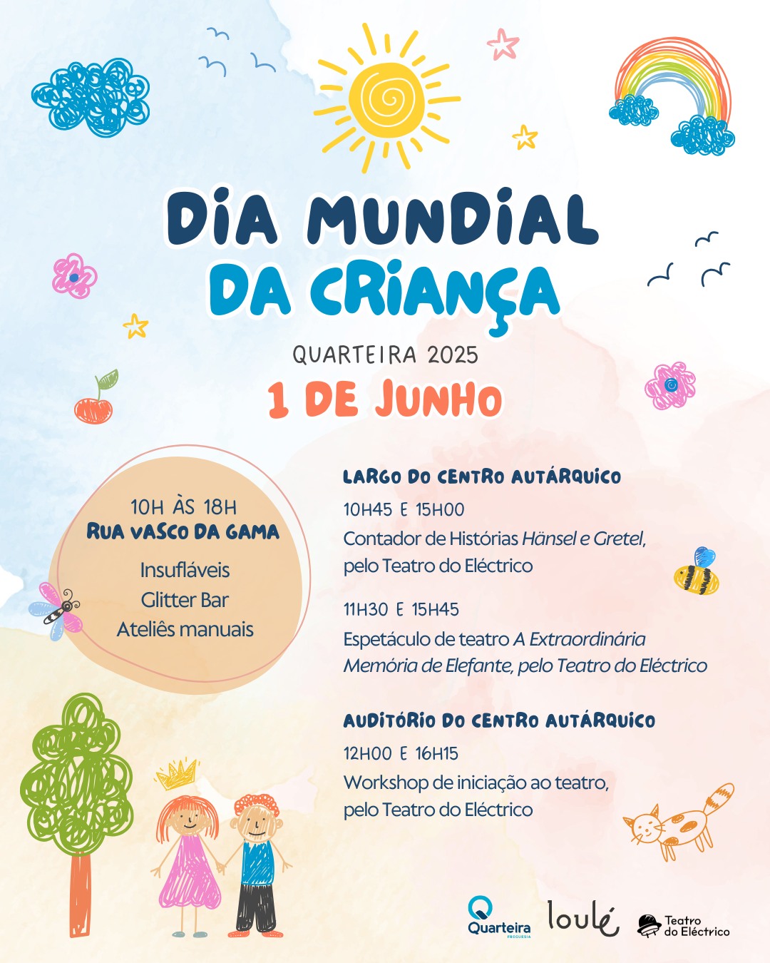 O Dia Mundial da Criança será assinalado em Quarteira com um programa festivo recheado de actividades gratuitas, a decorrer durante todo o dia 1 de junho, sábado, na Rua Vasco da Gama e no Largo do Centro Autárquico.
